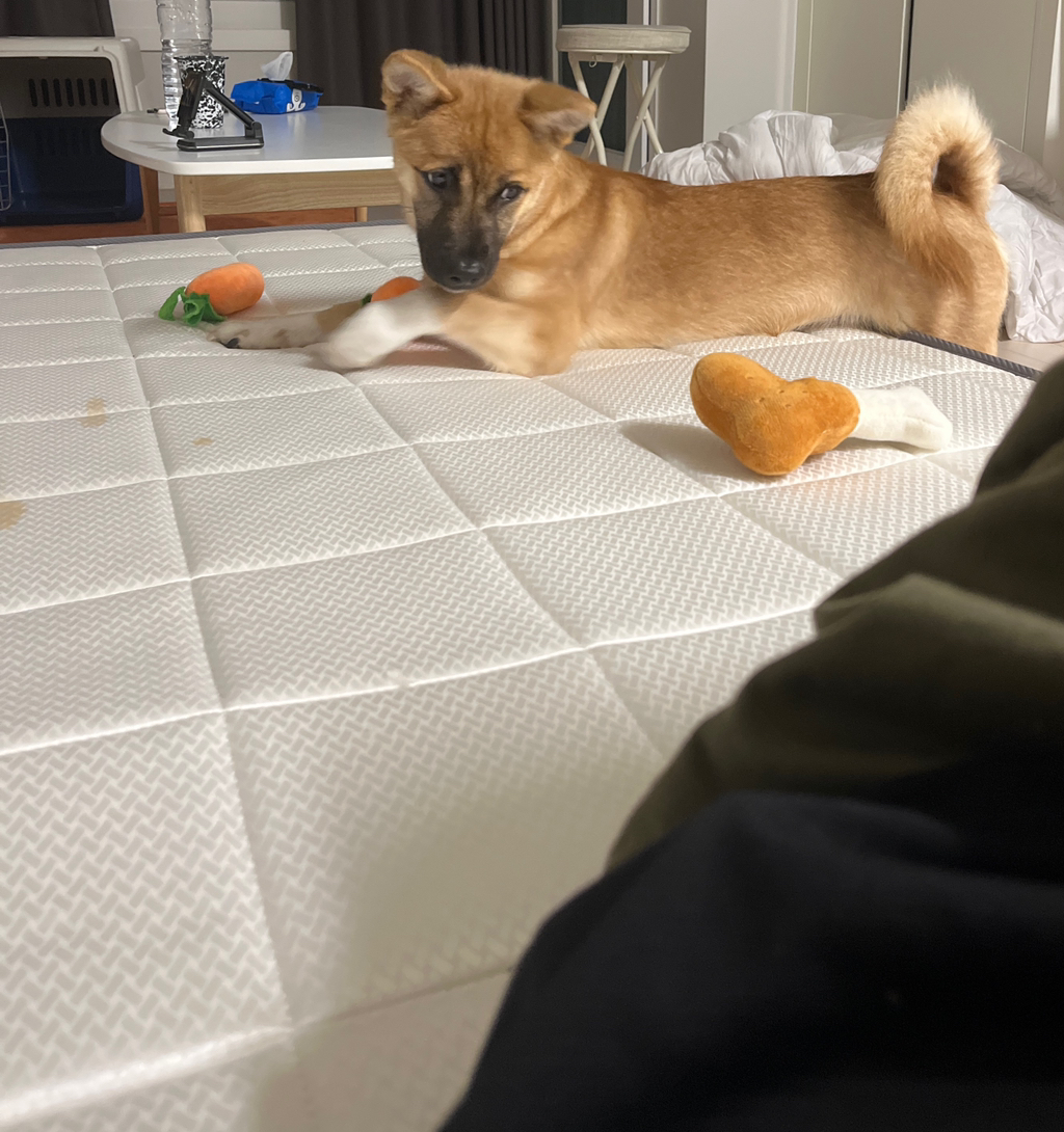 일 가기 전 제가 준비하느라 놀아주지 않아서 삐진 모코예요