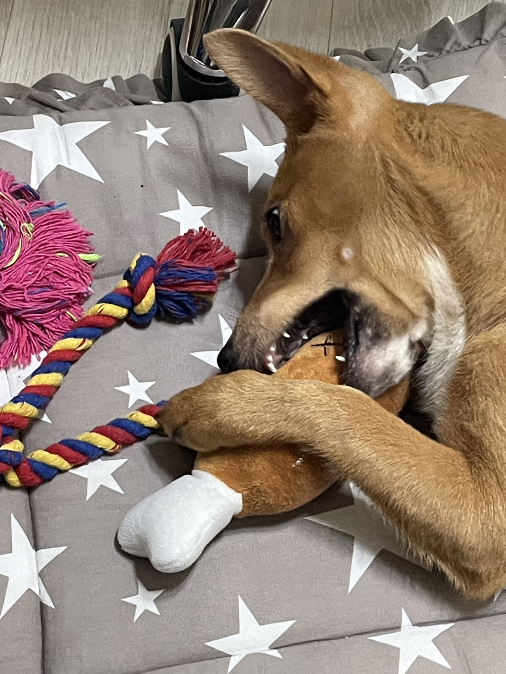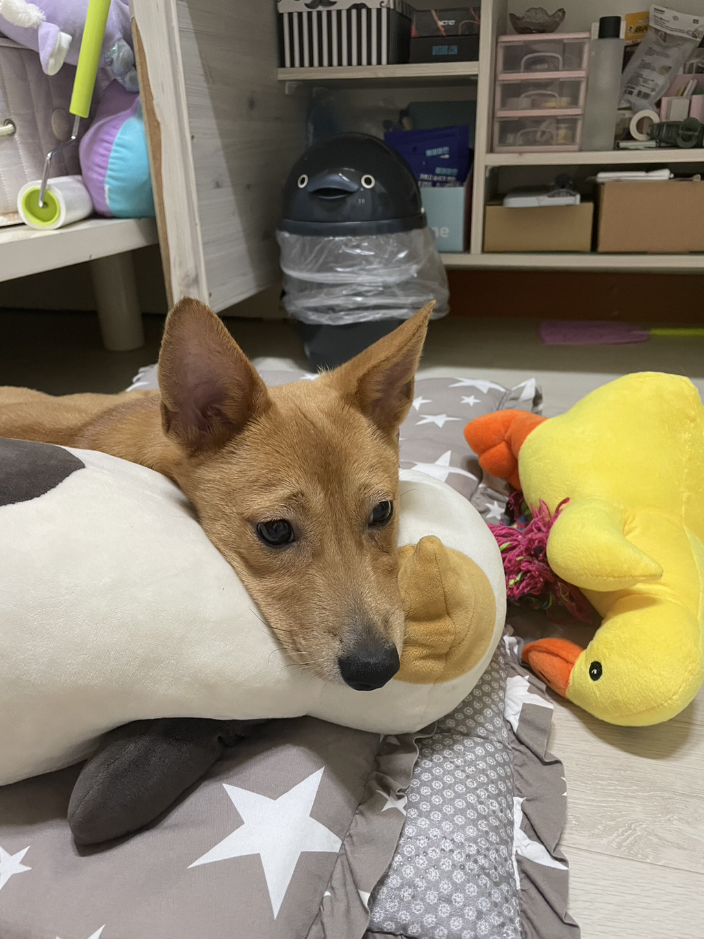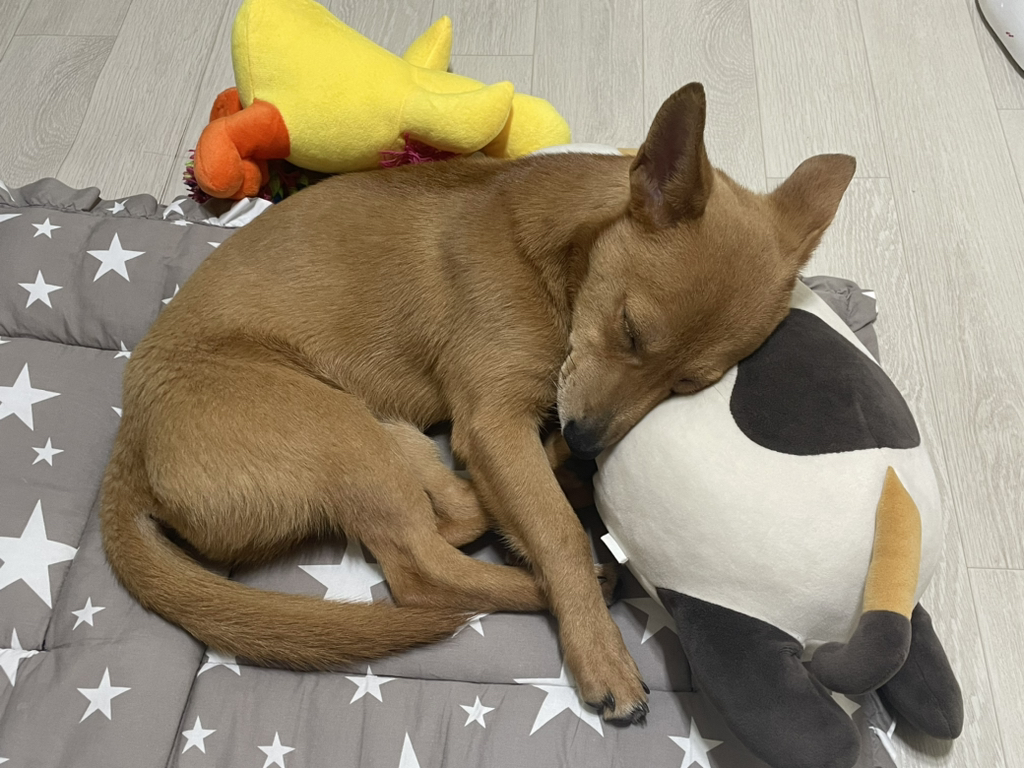아직 아기라 잠도 많은 우리 바오는 에너지도 넘치지만 산책으로 풀어주면 금방 다시 쿨쿨 잠에 든답니다. 장난감과 산책으로 에너지를 풀어주면돼요.