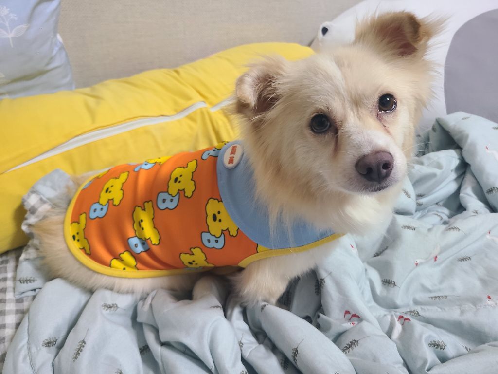 진짜... 지이이이이인짜.... 너무 귀여워요..... 너무너무 감사합니다....!!!!😍😍 망고도 이거 입을때만큼은 안 더워하더라구요 특히 물 묻혀서 입혀주면!!!! 덕분에 더위는 나름 잘 버티는거 같아욬ㅋㅋㅋㅋㅋ