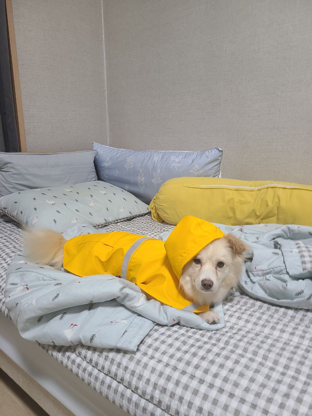 우비 샀을때까지만 해도 망고가 실외배변 위주로 가는 거 같아서 마침 비오는 시기도 오겠다 해서 샀는데 아니... 애가 안 나갈 기미가 보이면 알아서 똥을 싸더라고요...? 너무... 너무 똑똑해서 그만 기절해버리고 말았습니다