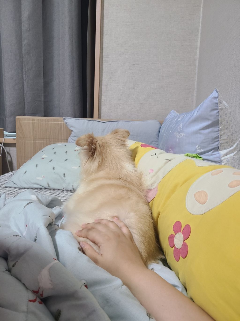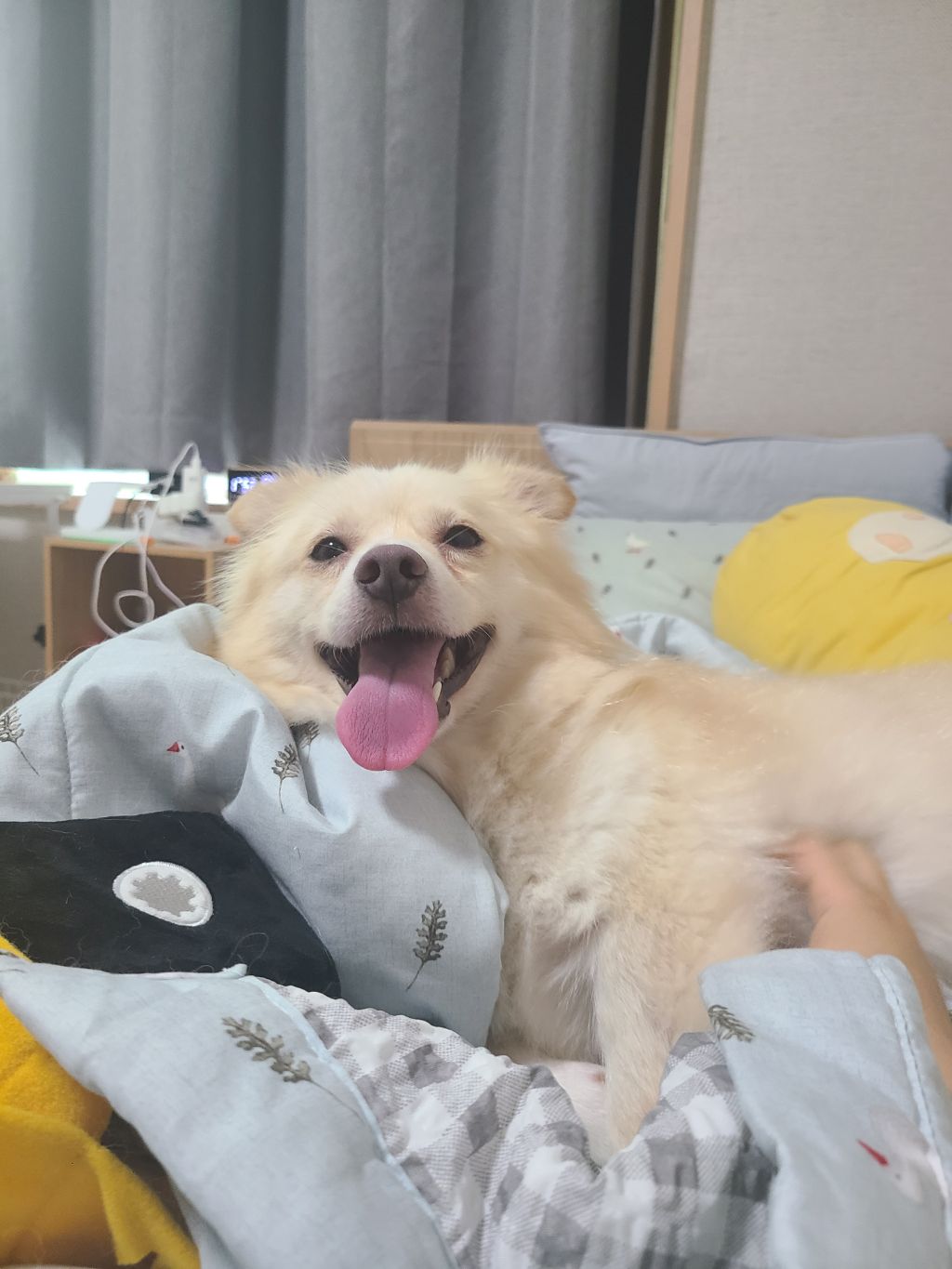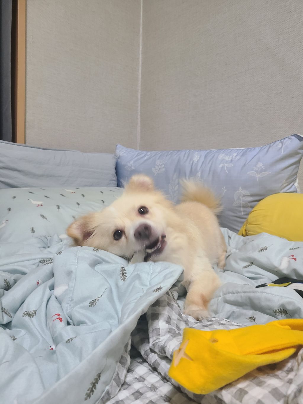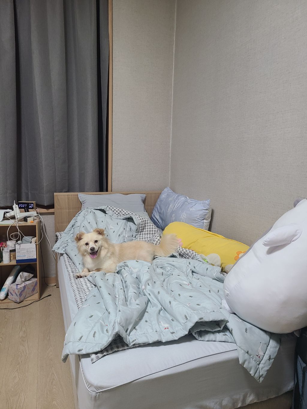 두번째 임보일기 이후로 아예 제 침대를 자기 집마냥 누비더라구요ㅎㅎ