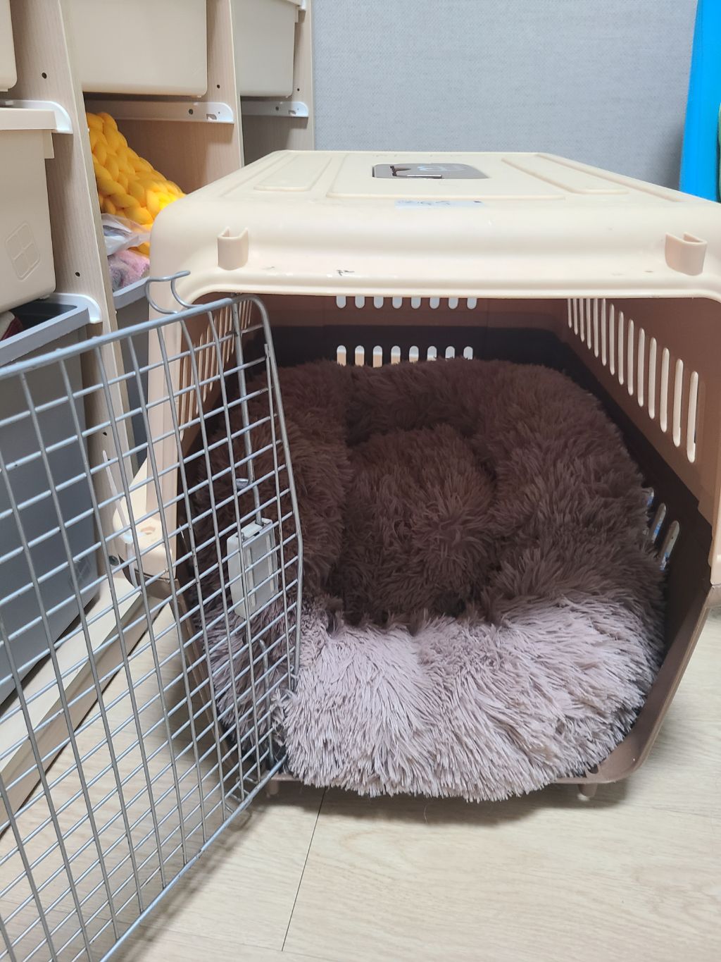 두달만에 망고 켄넬 꺼내서 안에 청소도 하고 망고 방석 (많이 쓰진 않았지만)도 깔아줬습니다 하하