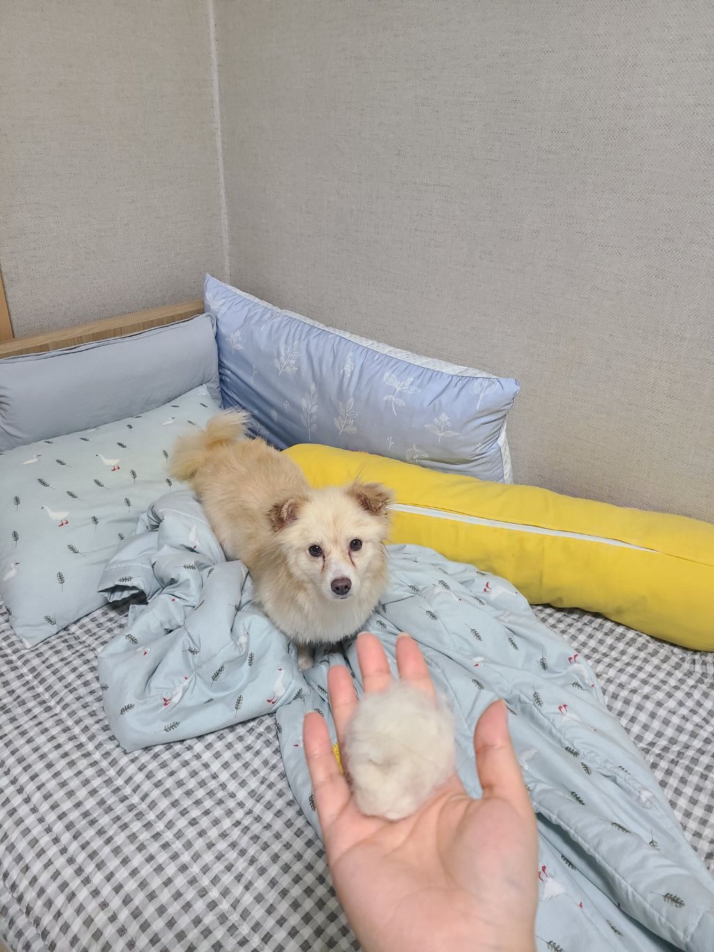 검정색 옷 입으면 한두가닥은 아니고 10가닥정도는 살짝 붙어있었는데 지금은 망고가 제 위에 올라갔다가 내려가기만 해도 저정도는 기본인거 같아요....ㅋㅋㅋㅋㅋ큐ㅠㅠㅠㅠㅠ 그래도 다행인게 빗질 박박 해주면 자기도 기분 좋아하더라구요!! 이런 강아지 처음 봐요 물론 저도 강아지 키워봤지만... 털이... 이런 느낌이구나...!!!ㅋㅋㅋㅋㅋㅋ