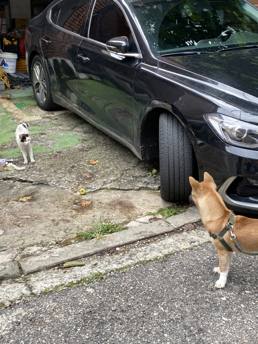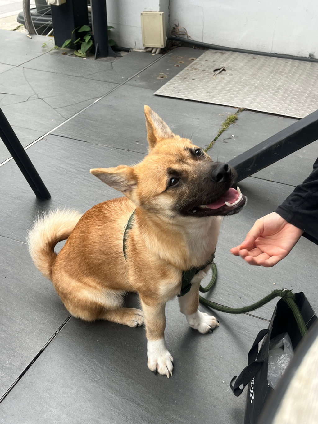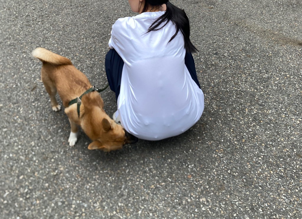 강아지 친구 만나면 소심하게 인사합니다