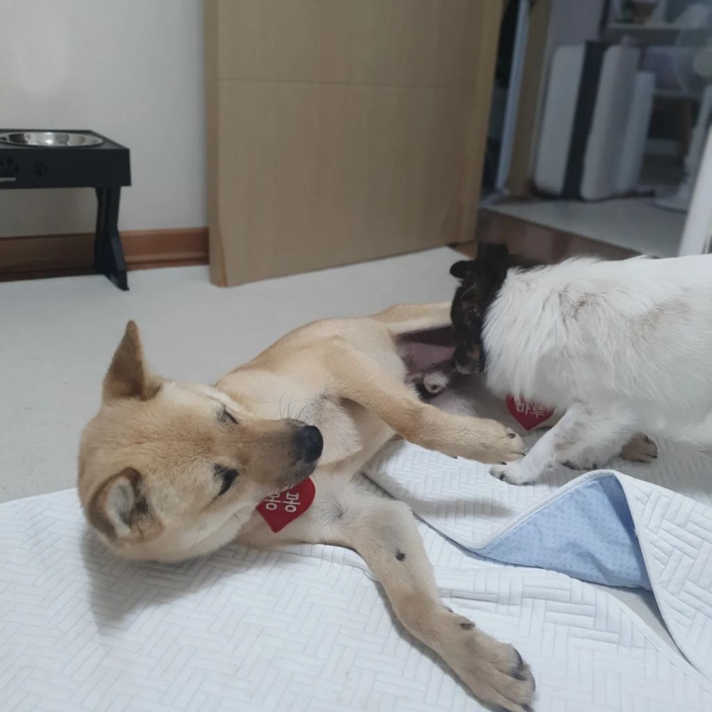 처음에 안길 때는 똥이 뚝뚝 떨어지고 온사방 벽에 오줌과 항문낭 발사를 할정도로 무서워했지만 열심히 연습해서 요래 이모 무릎에 불편하게나마ㅋㅋ 올라올 수 있답니다!