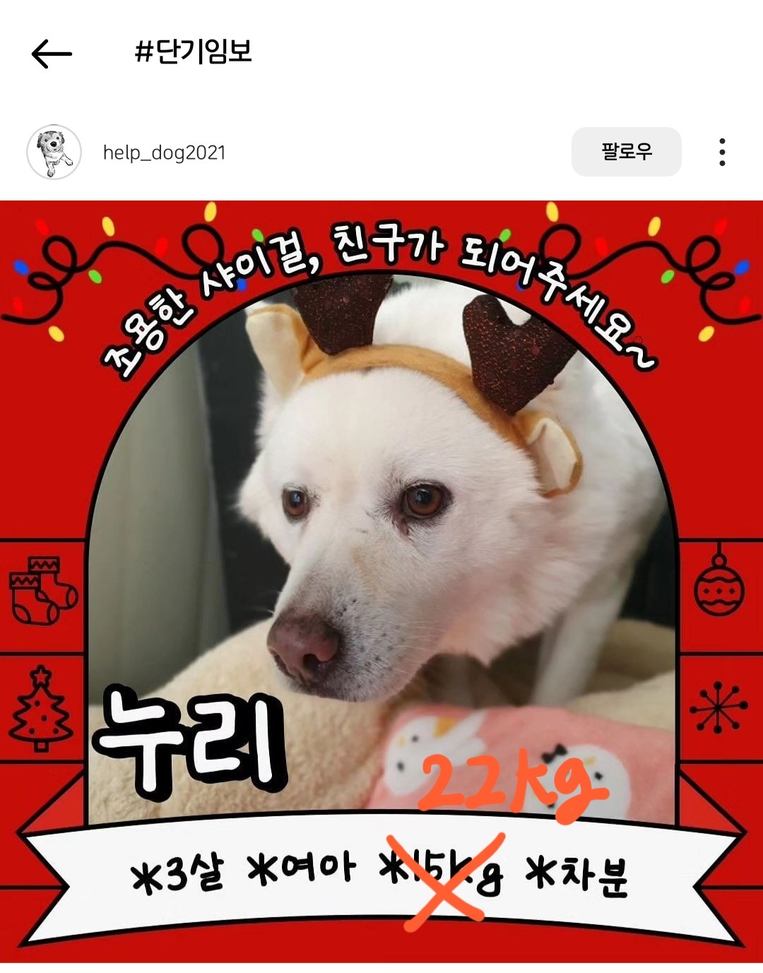 안녕하세요 누리 2주차 임보일기입니다