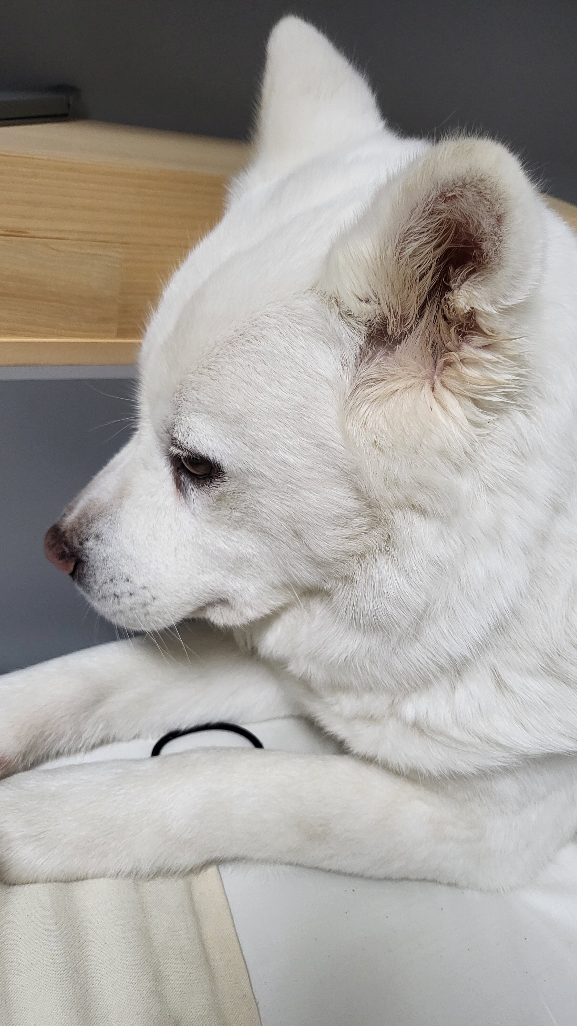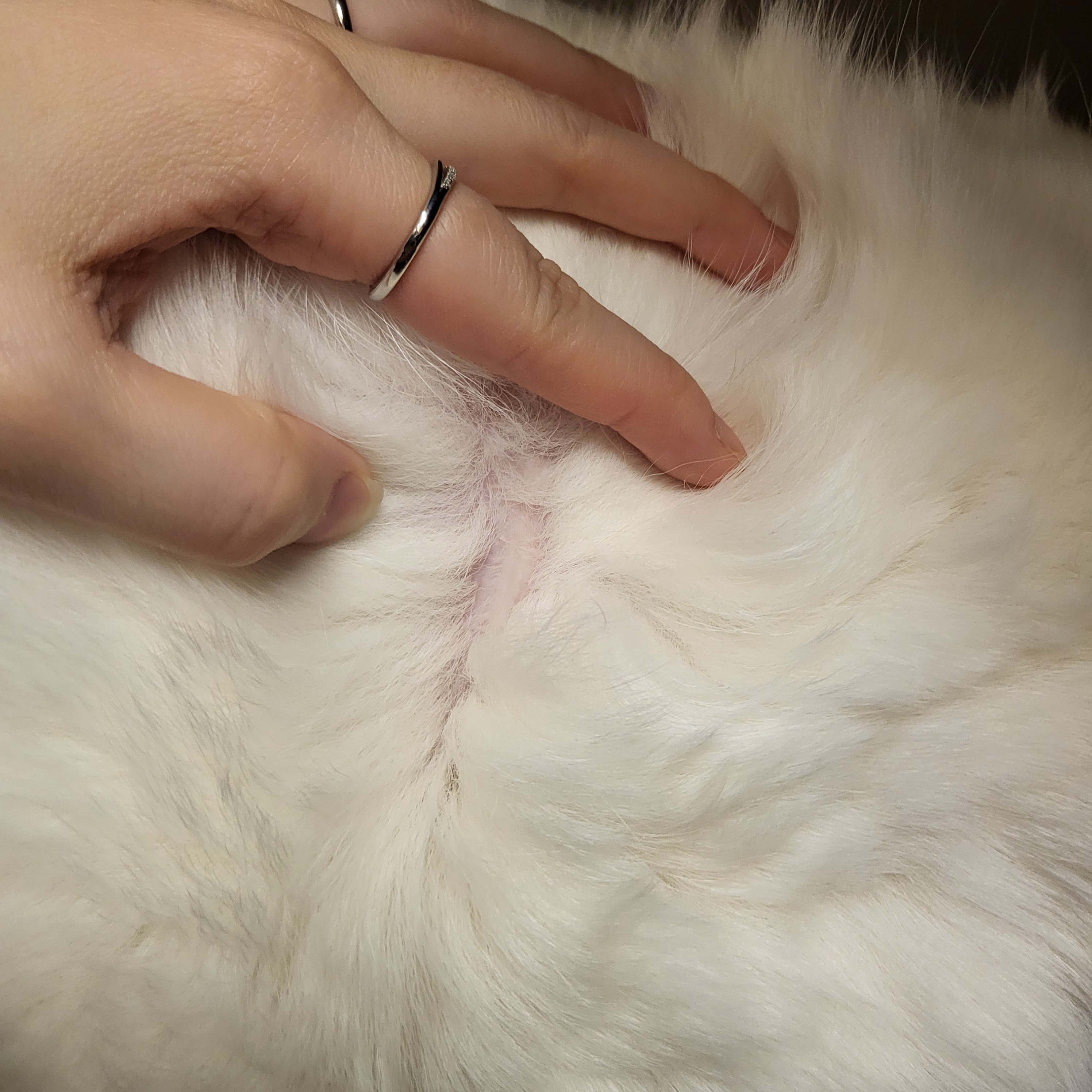 누리 목에는 이렇게 자국이 있더라구요 오늘 동물병원 가서 물어보니까 흉터가 맞는 것 같다고 하셨습니다 🥲