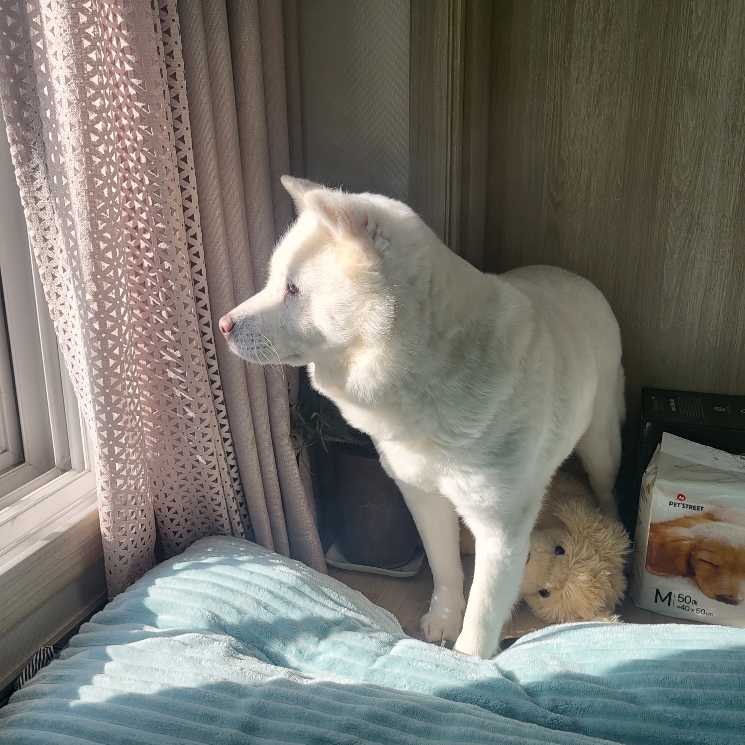 누리는 아직 저를 피하지만? 제가 옷을 입으면 산책 나간다는 걸 알고 저렇게 소심하지만 쪼르르 따라나온답니다
