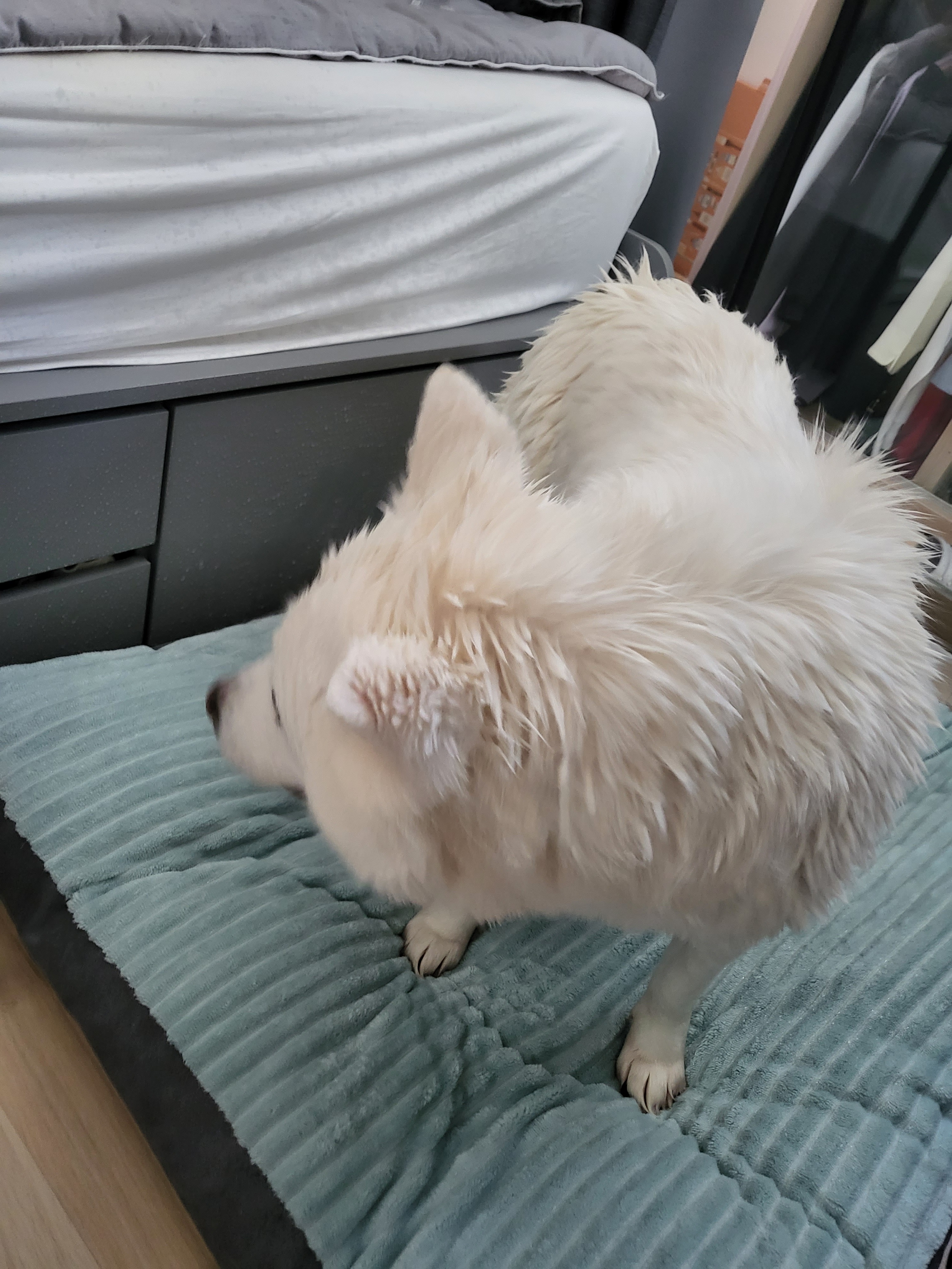 -드라이기 극혐해서 계속 도망가다가 갈 곳이 없으니 결국 침대에 올라가보더라구요