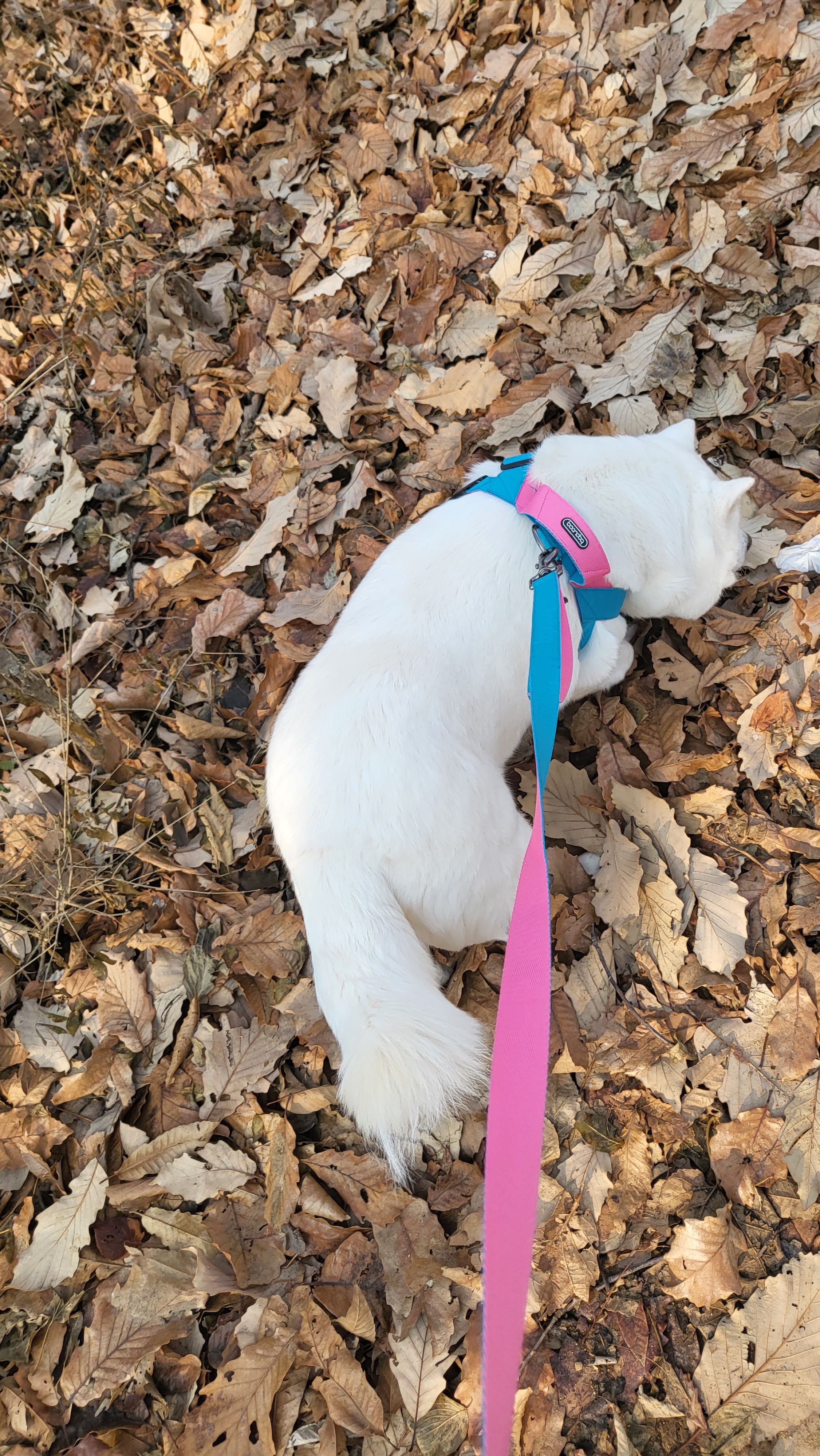 낙엽이 잔뜩 쌓인 곳에 가서 있으면 발로 슥슥 땅을 긁어보고 볼일을 본답니다