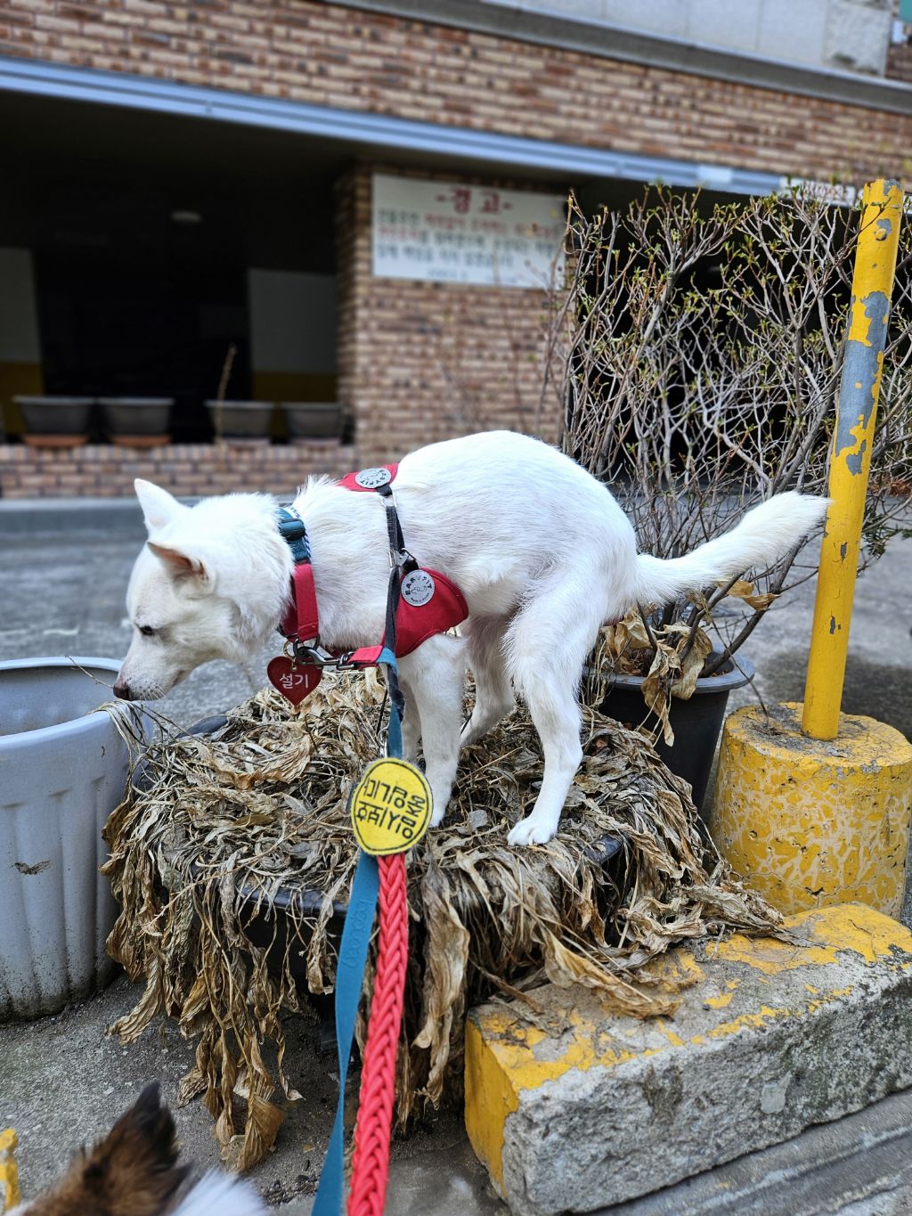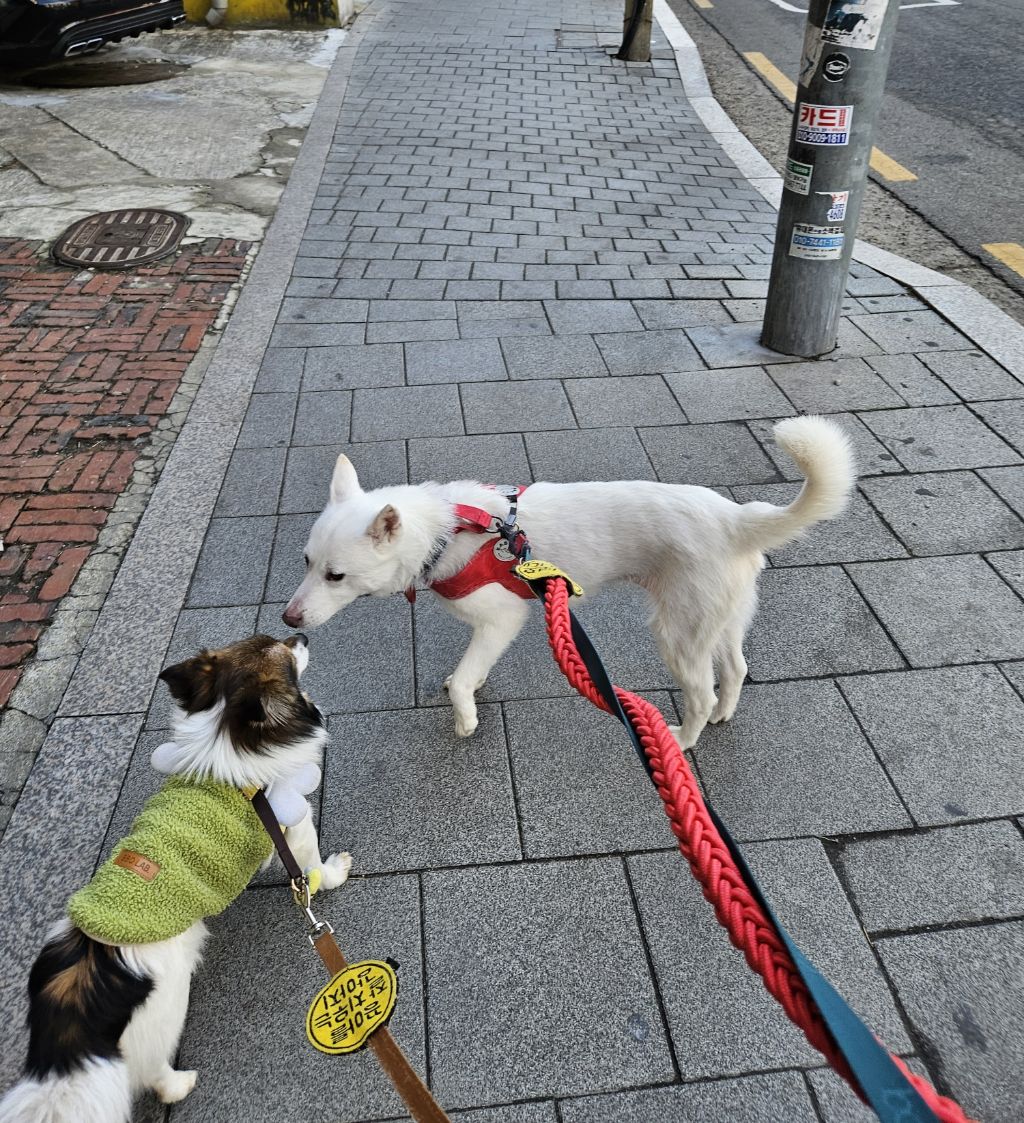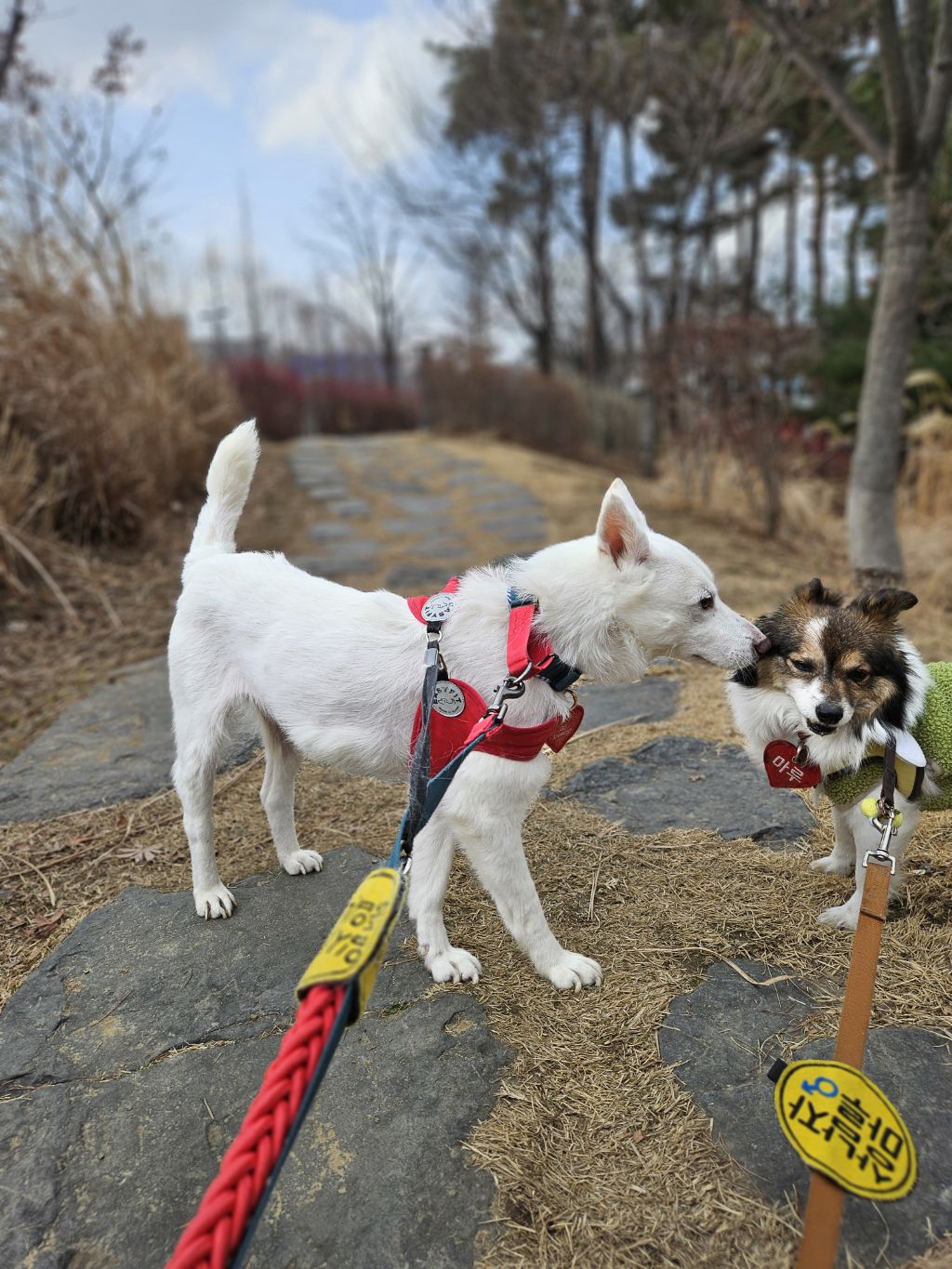 설기는 산책하다 기분이 업 되면 마루오빠한테 깡총거리고 놀자고 장난을 걸거나 뽑뽀를 해요. 첨엔 으르릉거리던 마루오빠도 이젠 그러려니 해요. (참고로 이 날 너무 신난 설기 발에 마루오빠 두 번 채여 나동그라졌어요ㅋㅋㅋㅋㅋㅋㅋㅋㅋ)