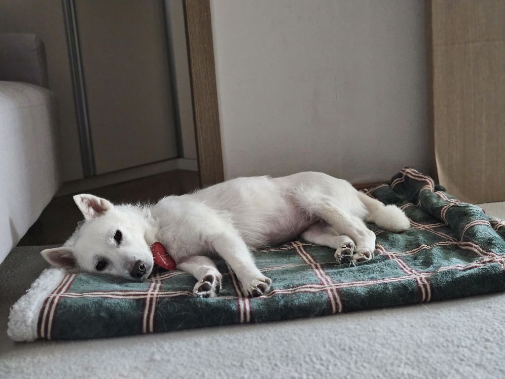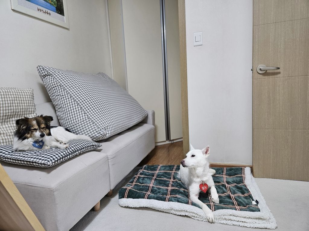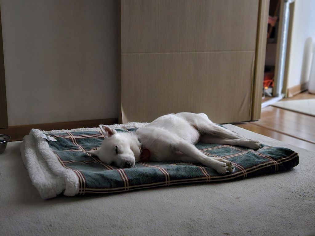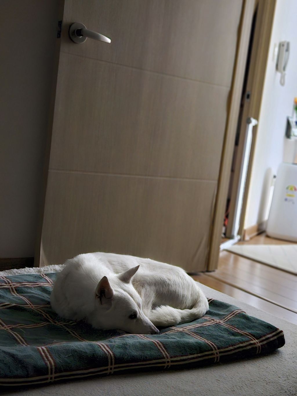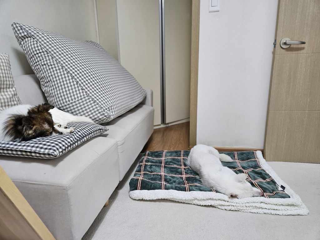 잠자리가 바뀌어 잘 못 잘까 걱정했는데..넘나 잘자요. 꿈꾸는지 자면서 짖기도하고 달리기도 해요 ㅋㅋㅋ