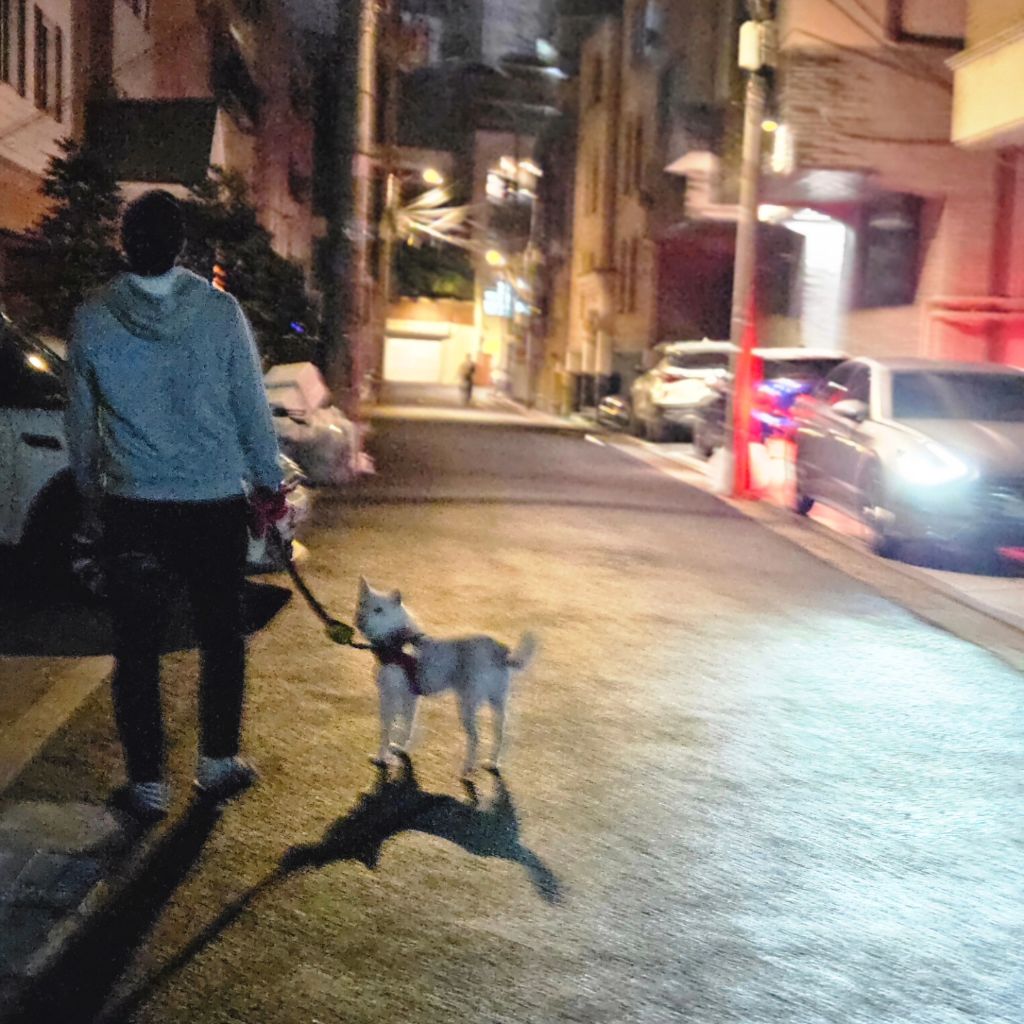 삼촌과 밤산책 나가서 우다다도 엄청 했어요. 그 뒤로 이모랑 나가도 우다다 하고 싶어하는데 이모는 힘들어서 못해요😒