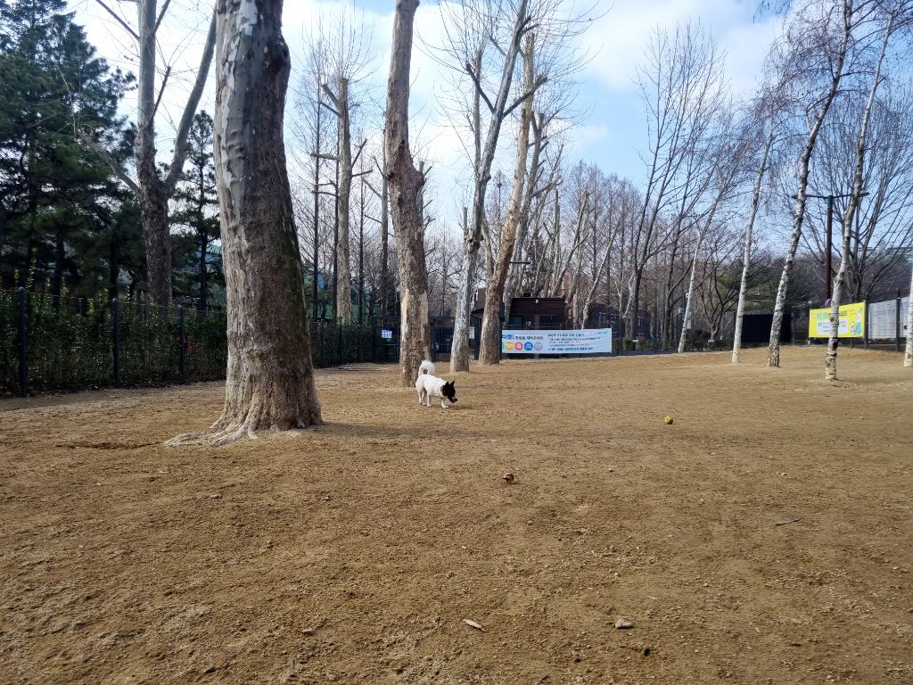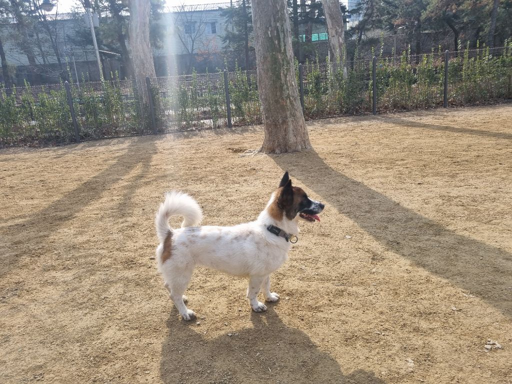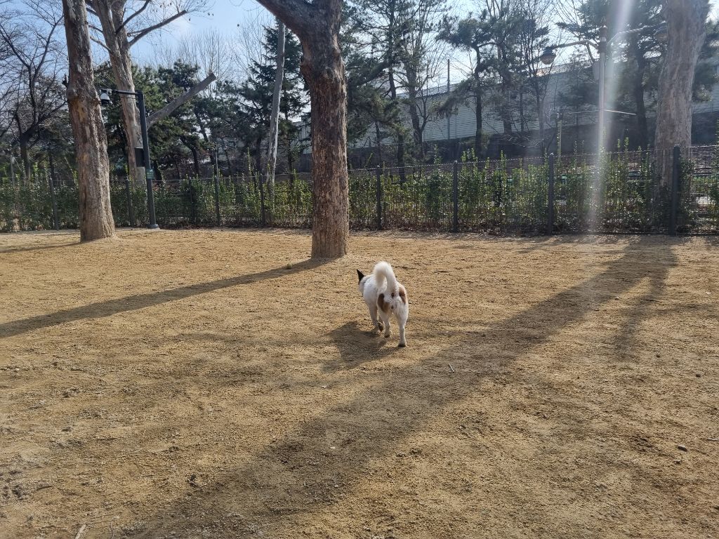 같이 애견 운동장을 간 날인데, 다른 강아지 친구들이 없어서 하추가 혼자 운동장을 독차지했습니다.