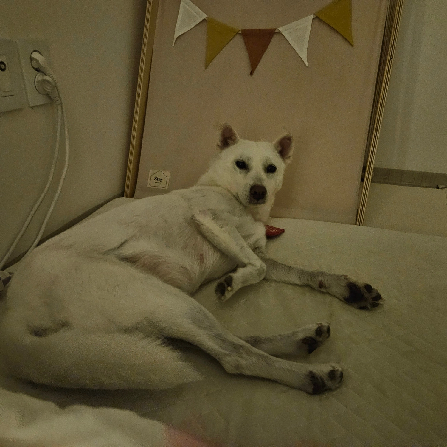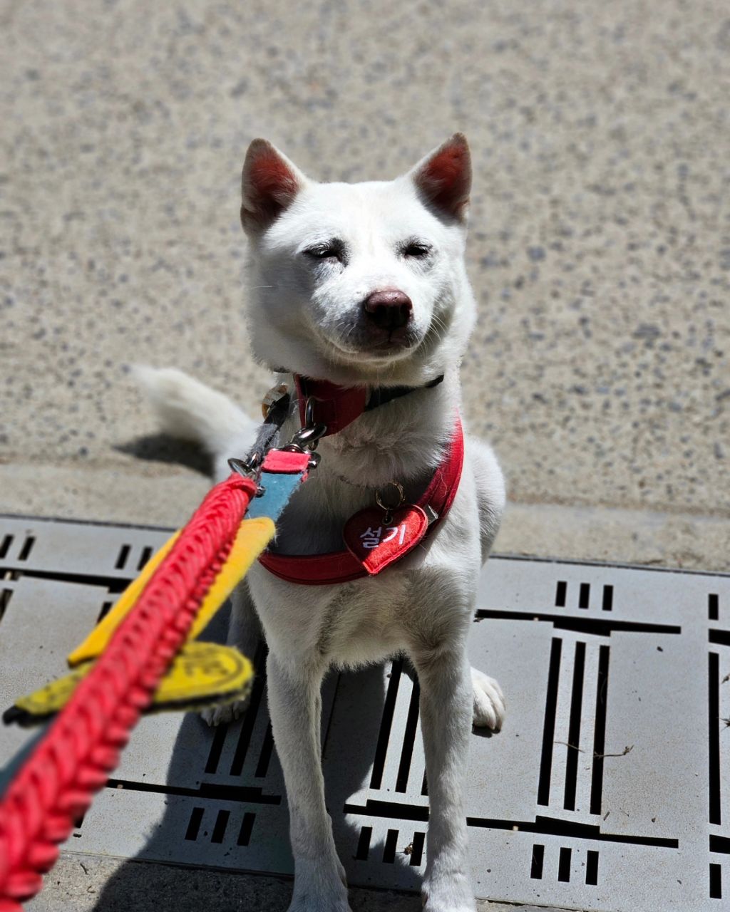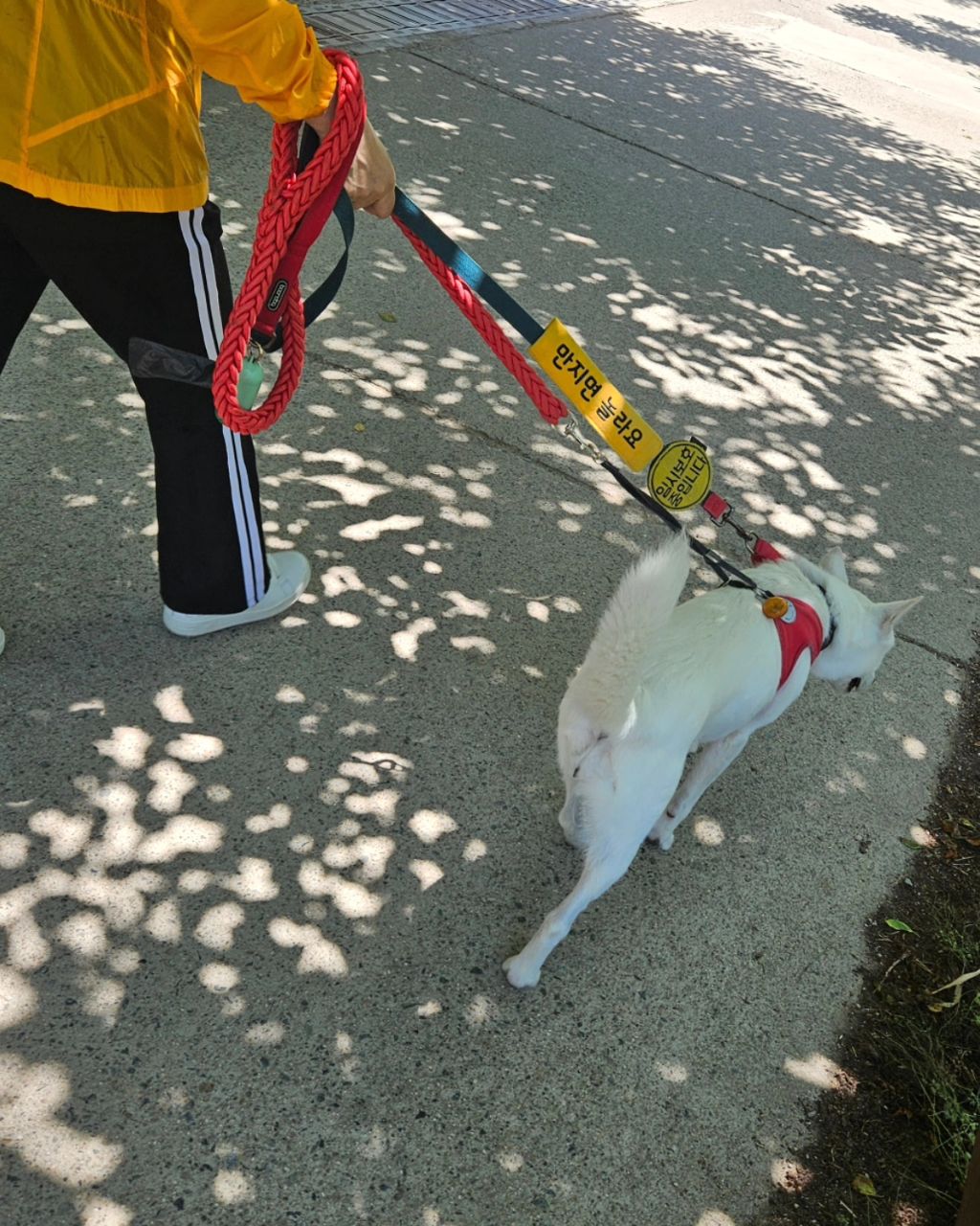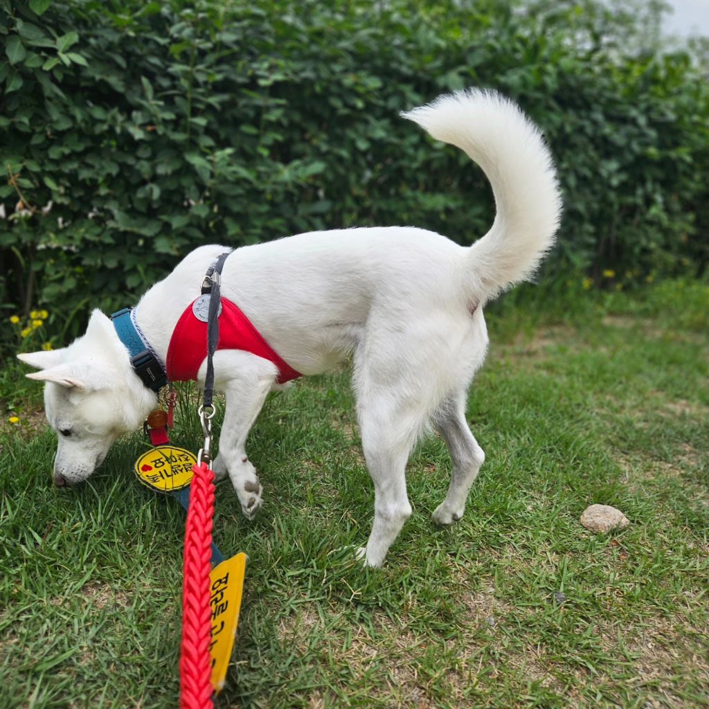 저희 어머니는 어린시절 개한테 턱을 크게 물려 흉터가 있어요. 특히 좀 큰개는 무서워하세요. 근데 설기는 이쁘다 하시네요. 저희 어머니 인생에 처음 개줄 잡고 산책 해 보셨어요. (마루조차 산책줄 잡아본적 없음) 초보인 60대 어머니조차 설기와의 산책을 좋았다 하실실정도로 설기는 매너좋고 순한 강쥐입니다.