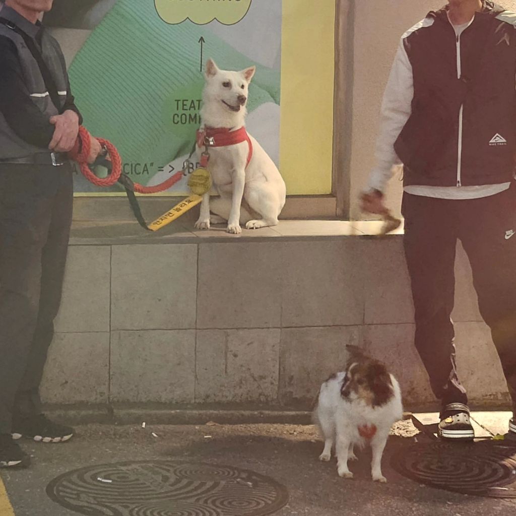 강아지 동상 보고 놀래서 절대 그쪽으로는 안가겠다고 뻐팅기는 쫄보탱구리 설기 ㅋㅋ