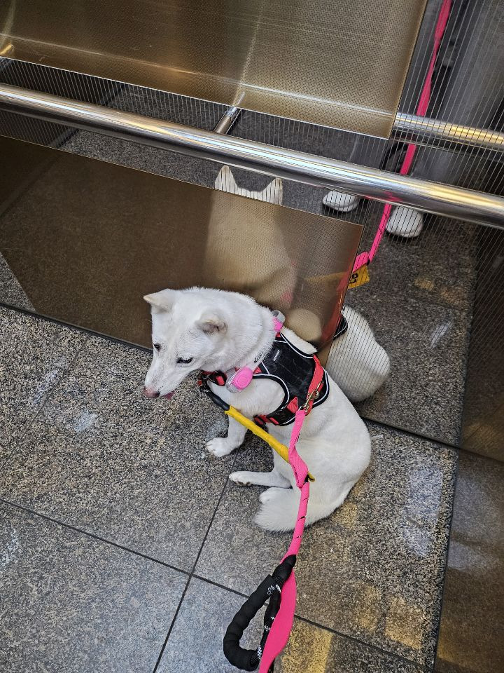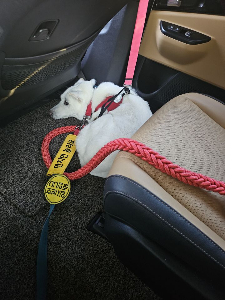 하네스 채울때 어색그잡채 였지만 이리 저리 밀고 땡겨도 눈만 깜박이며 잘 참고 따라와준 너란아인 갬동 그잡채!