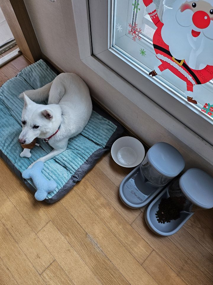 - 아직은 적응기라 사람이 있을땐 먹지 않지만 첫날 새벽에 물이랑 사료랑 다 비워놓은 너란아이