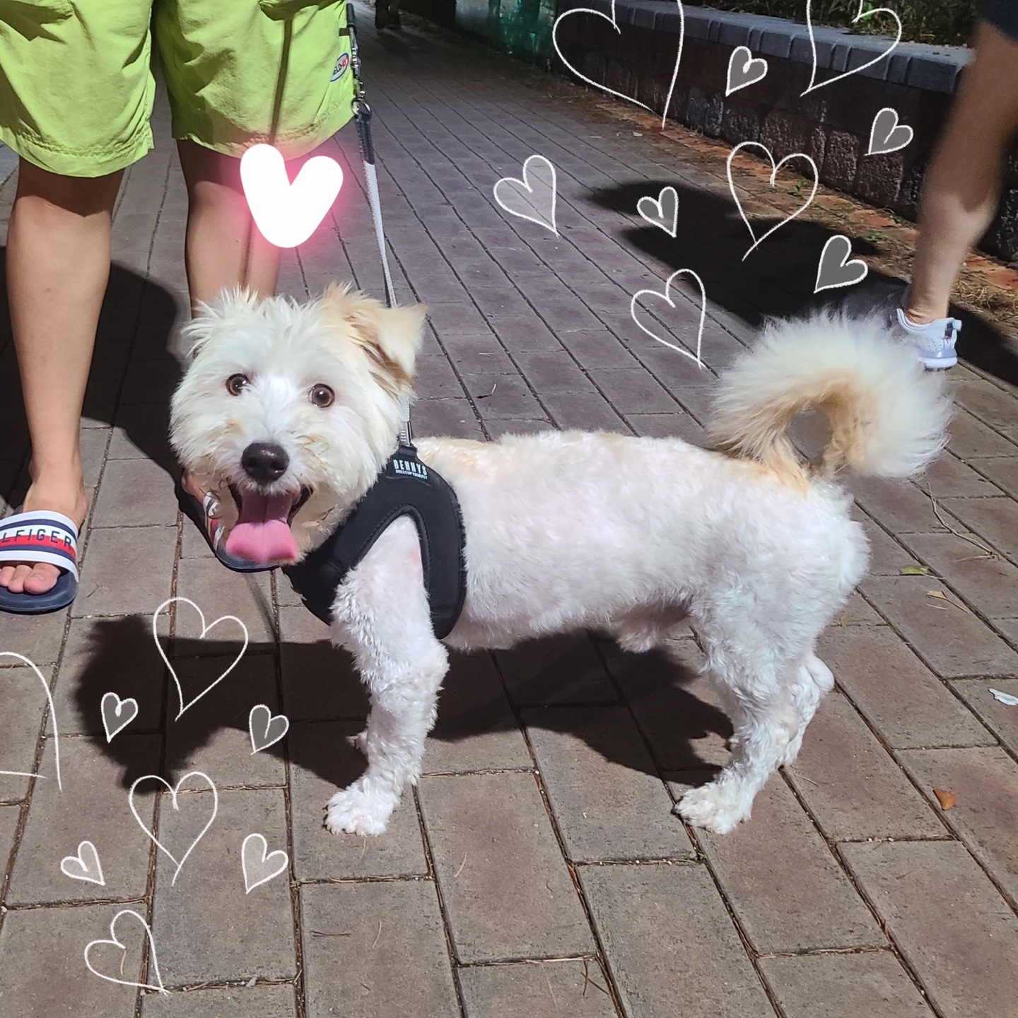 -산책을 엄청 좋아해서 산책가자고 하네스를 물어오기도 합니다. 하네스 입고 벗기는데 전혀 무리 없어요.