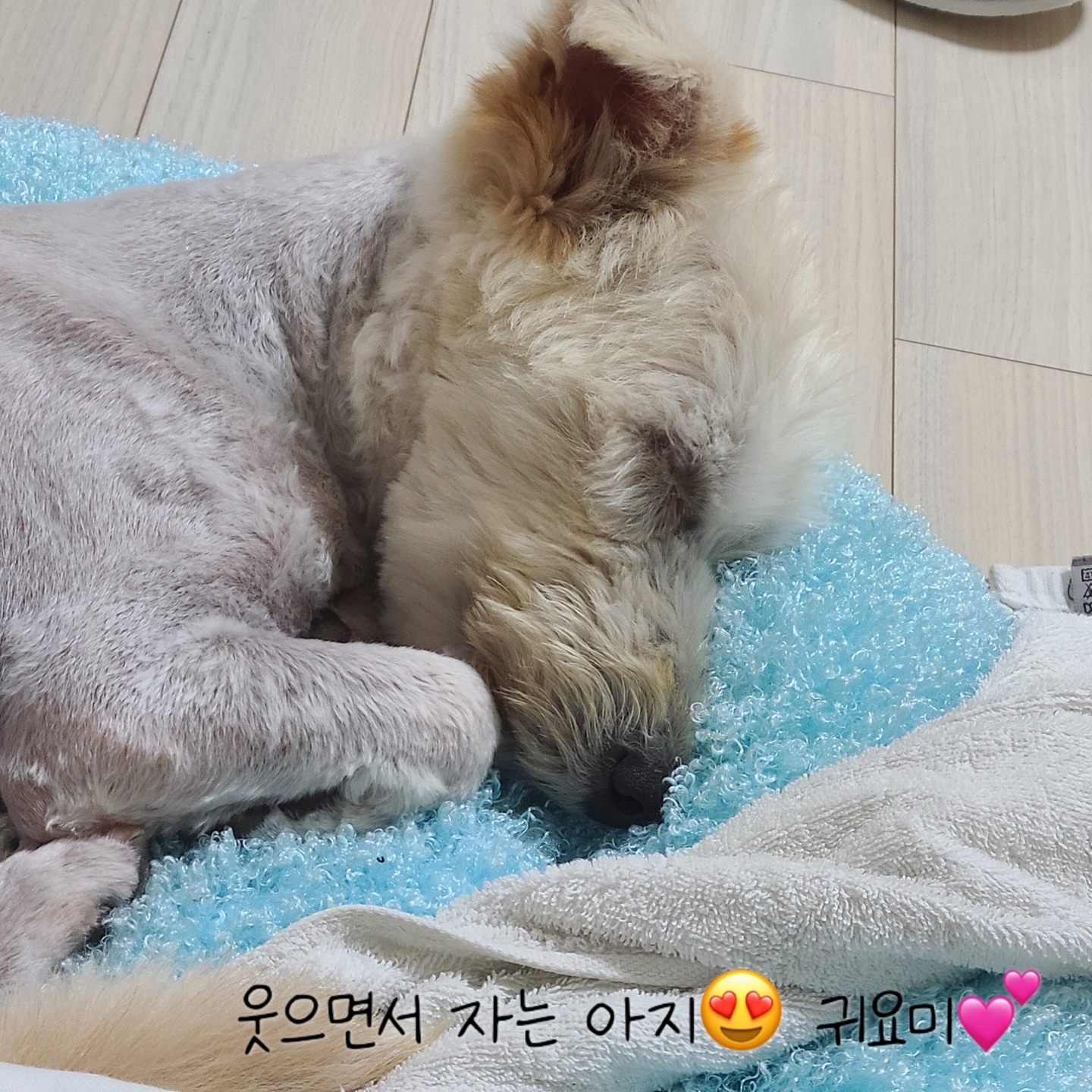 -더우면 바닥이나 현관 같은 시원한 곳을 찾아서 자고 그렇지 않으면 보호자 옆에서(침대) 자고 싶어합니다.