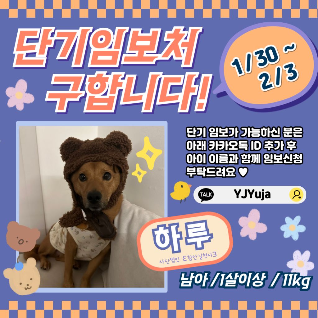 하루를 단기 임보해 주실 수 있는 분이 계시다면 단기임보 신청 부탁드려요♥