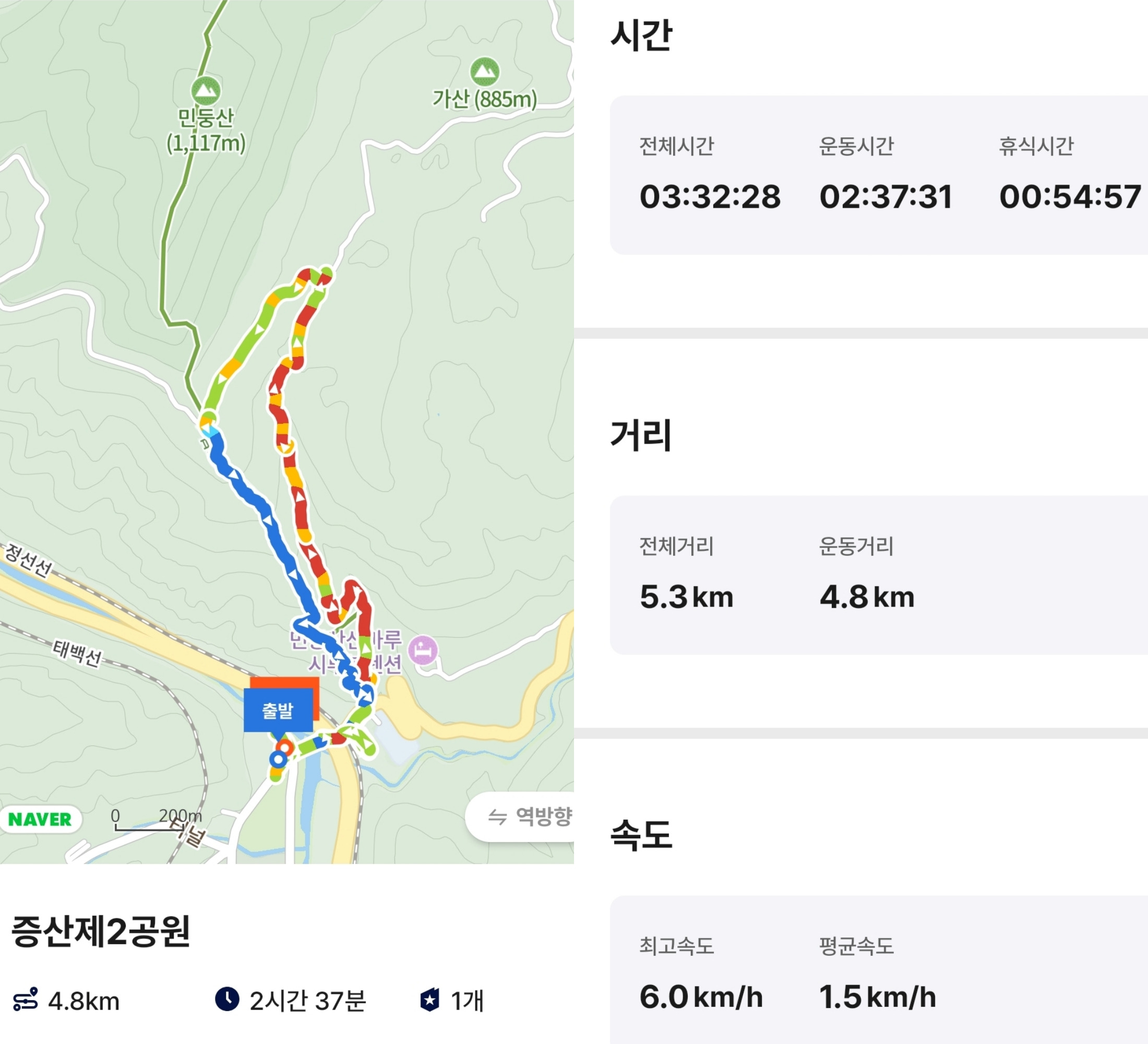 4. 산행시간 : 3시간 32분(휴식시간 2시간 37분 포함)