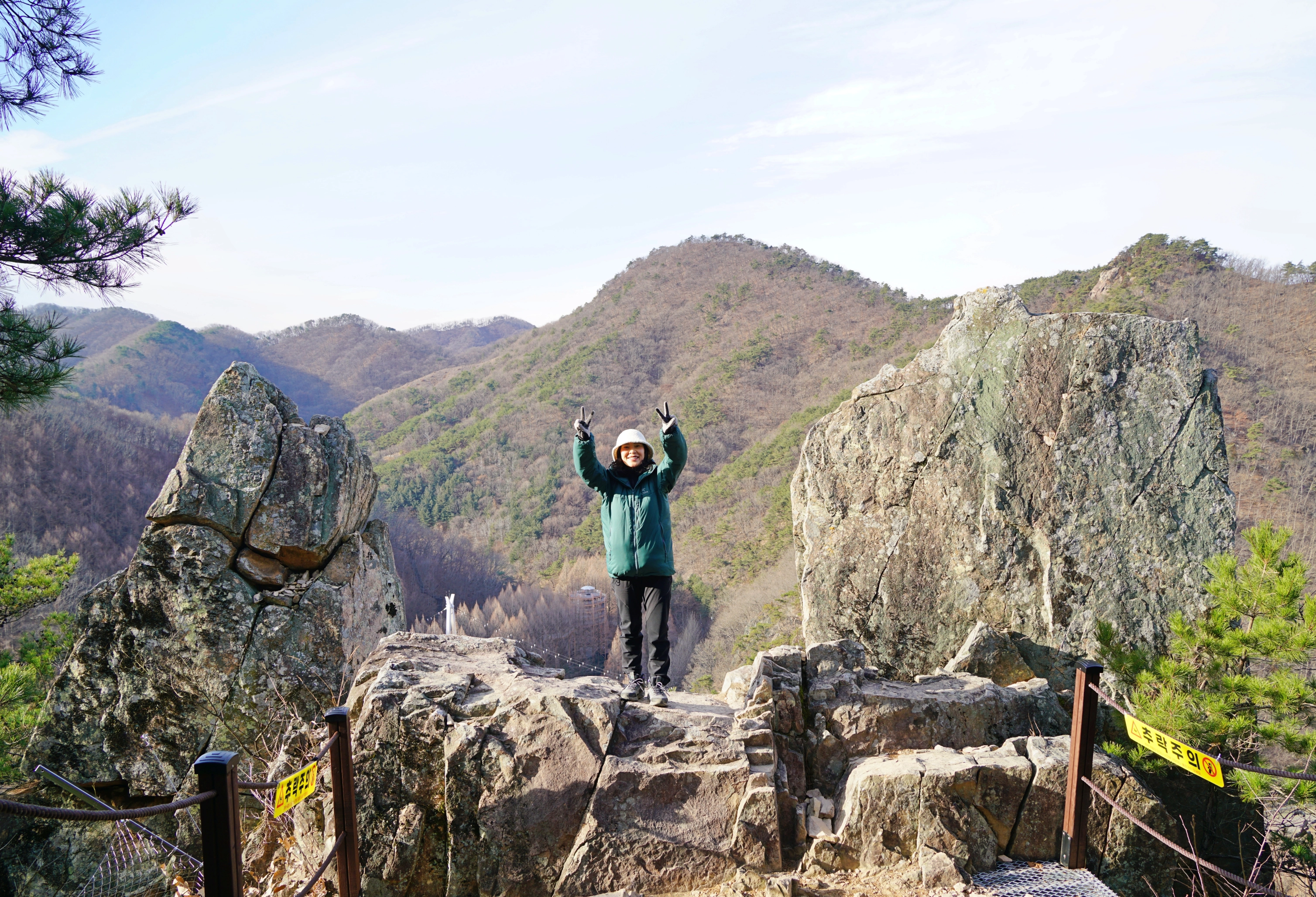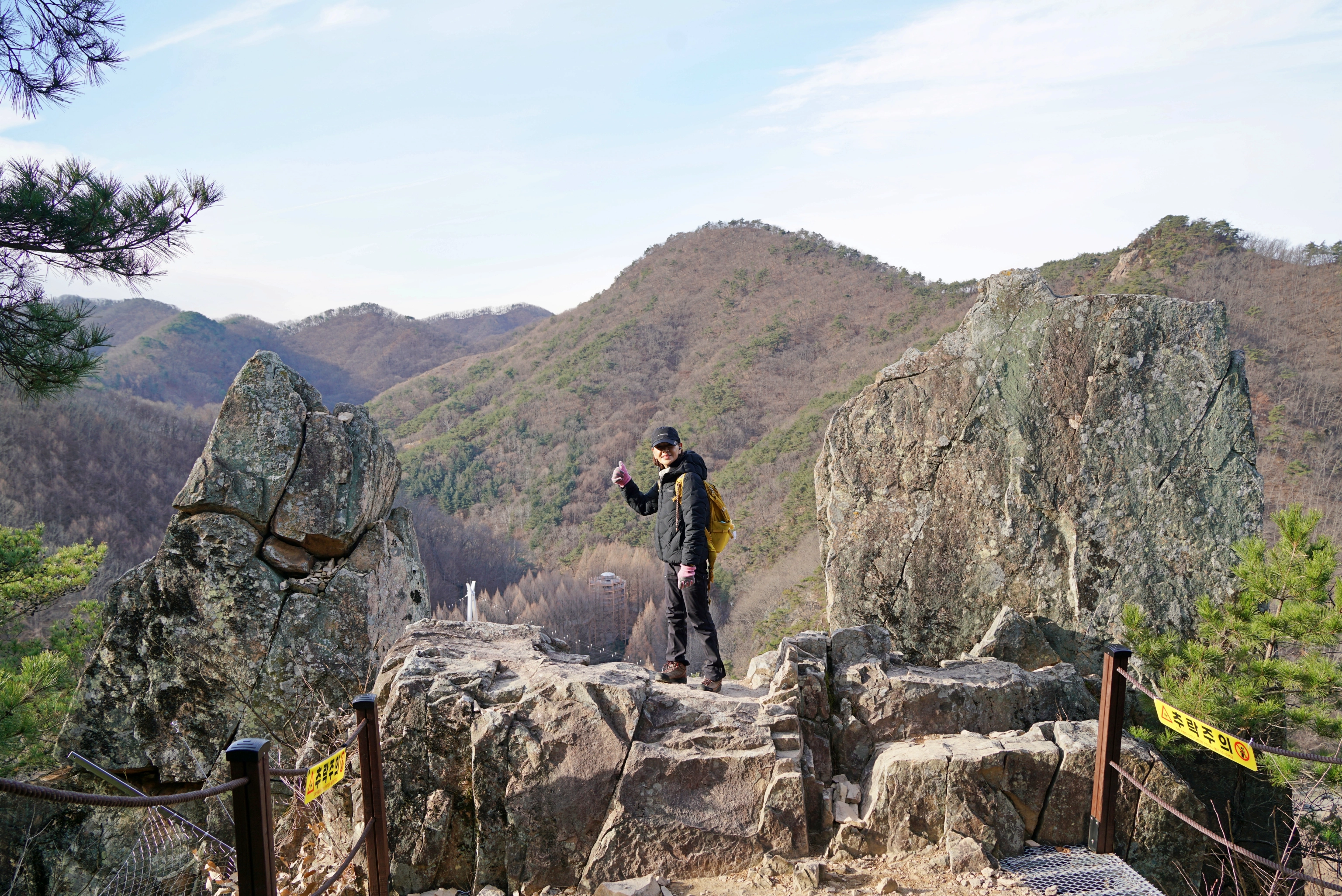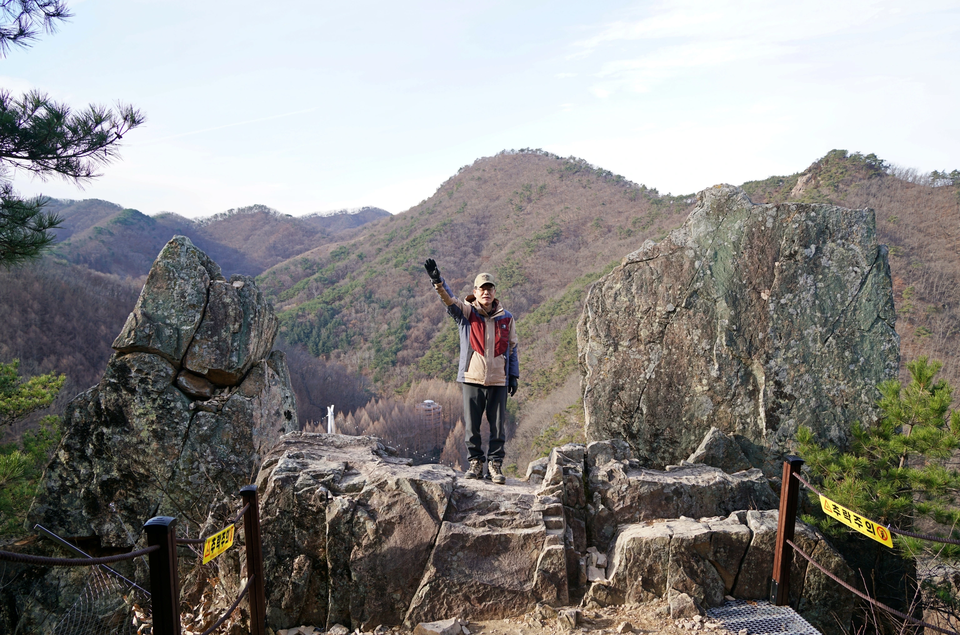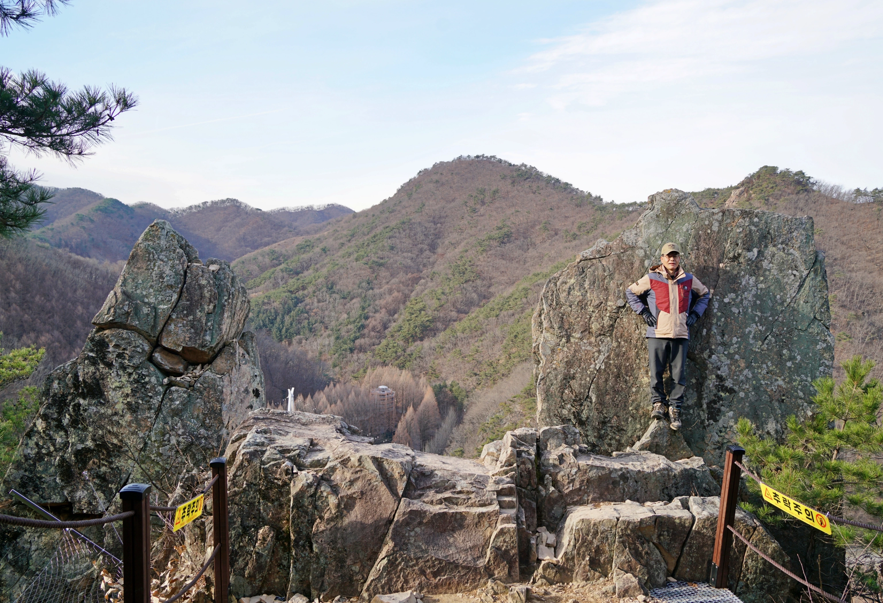 장태산 정상의 형제바위 위에 있는 전망대에서는