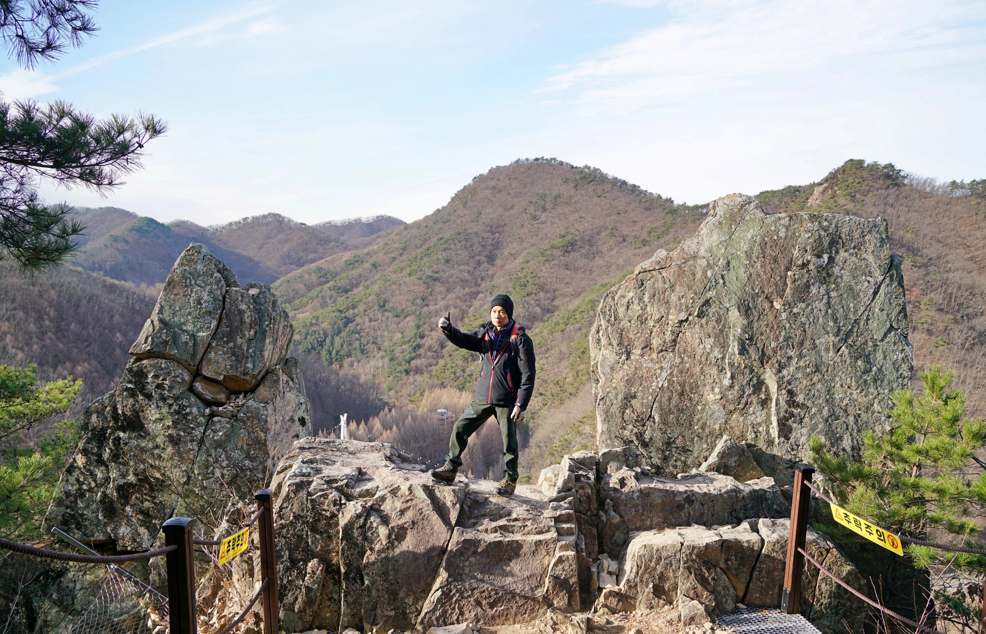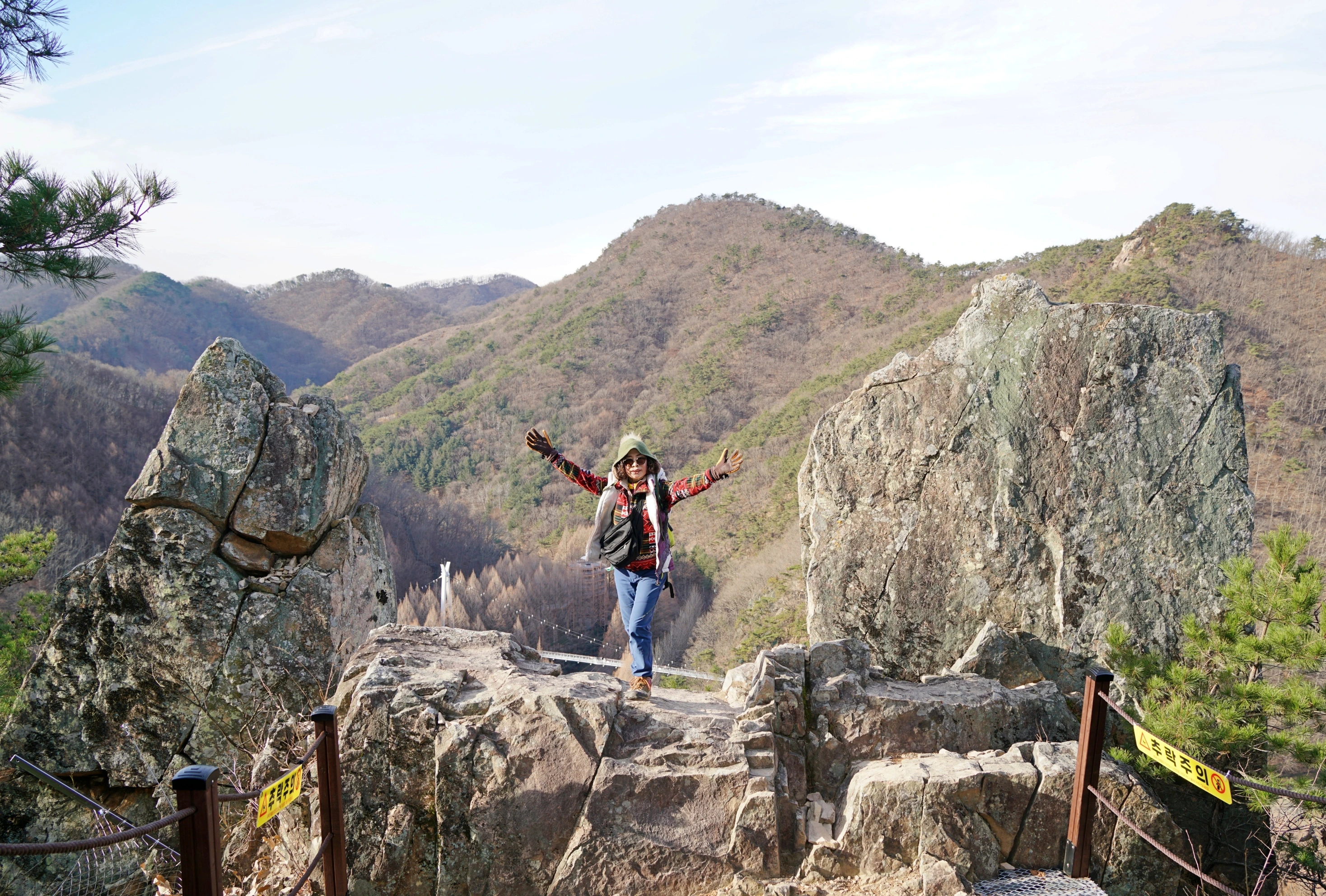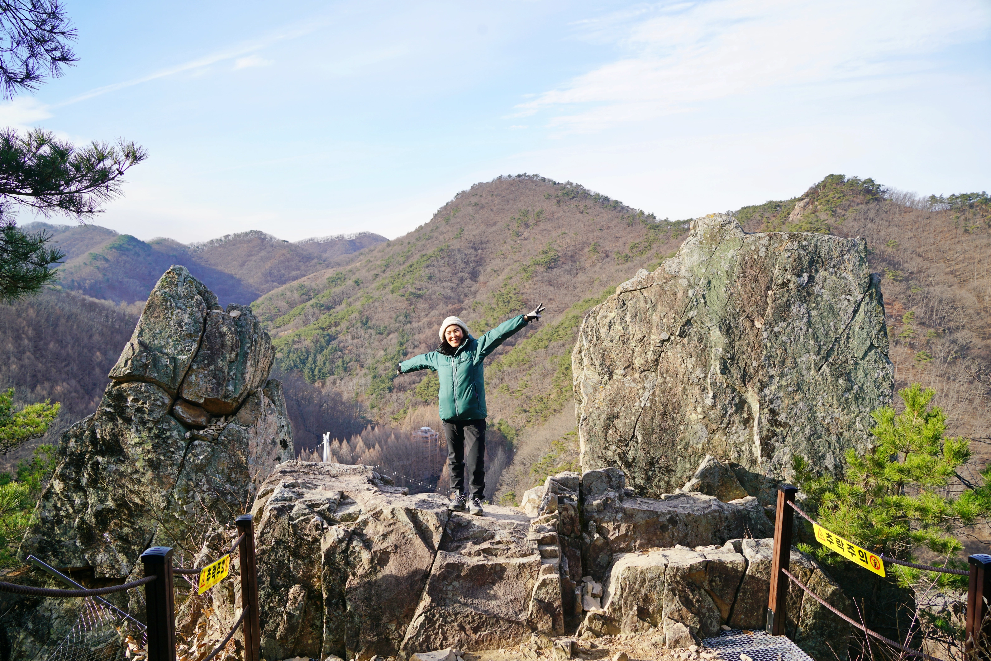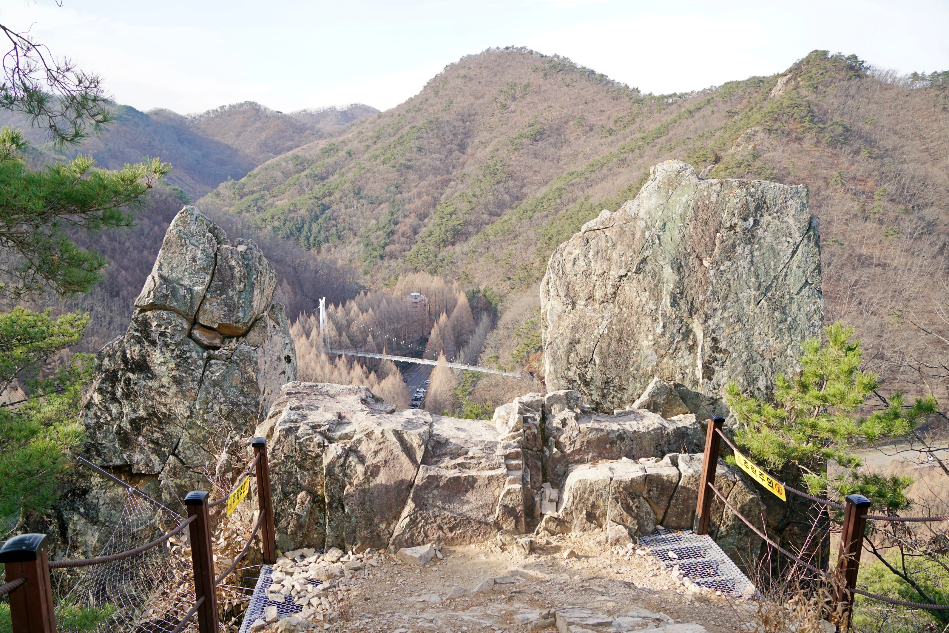 장태산 정상의 형제바위 위에 있는 전망대에서는