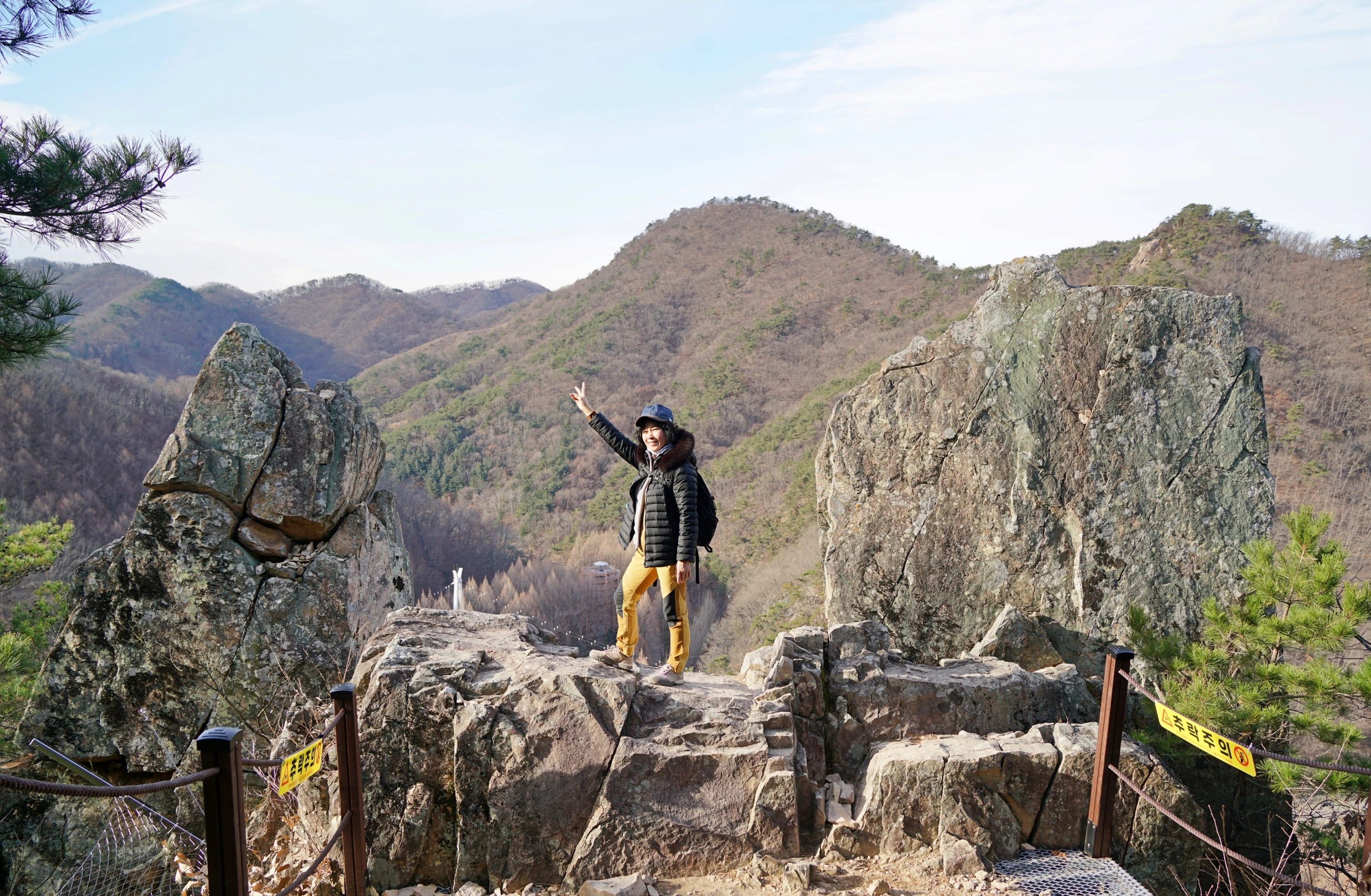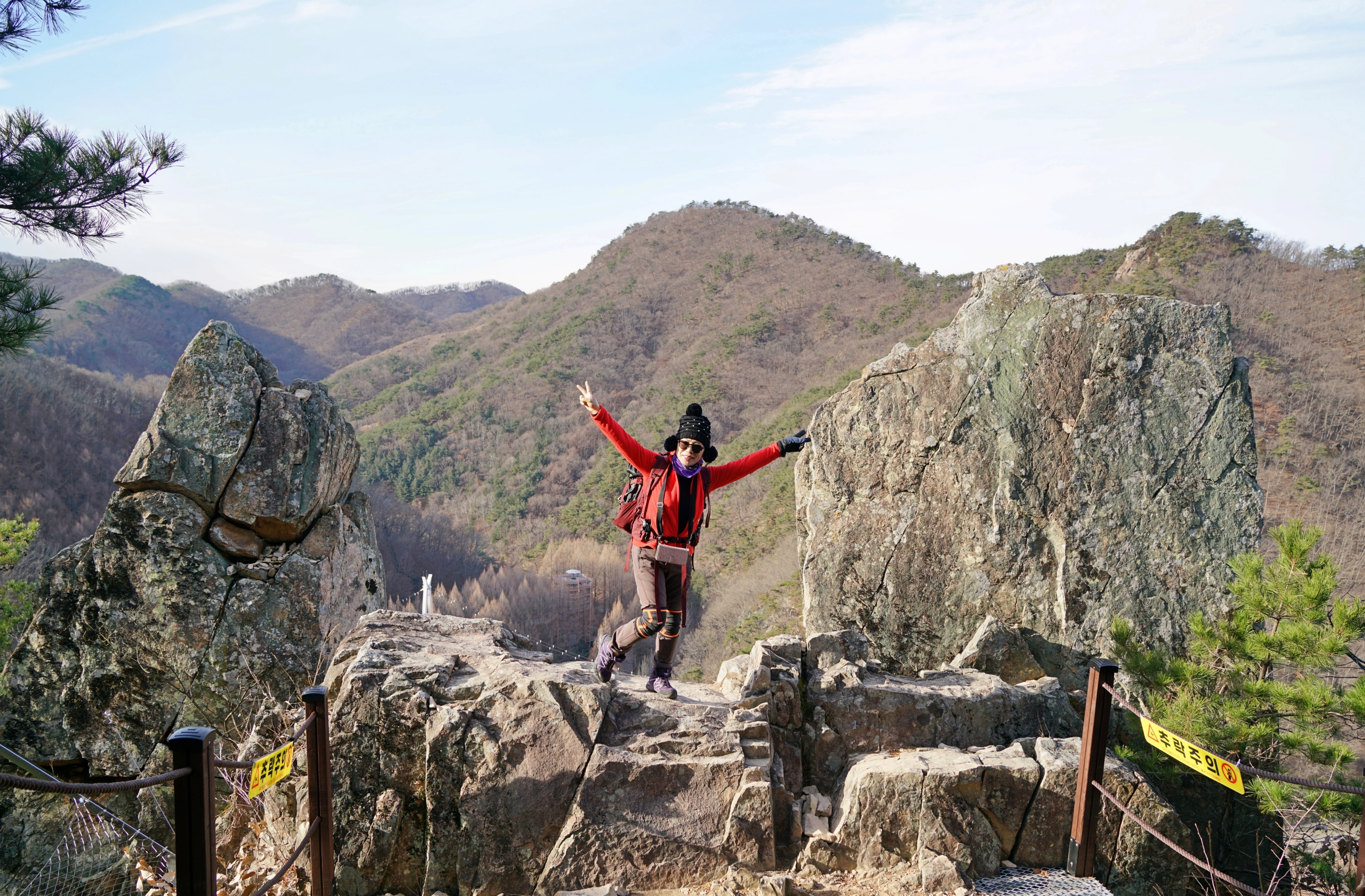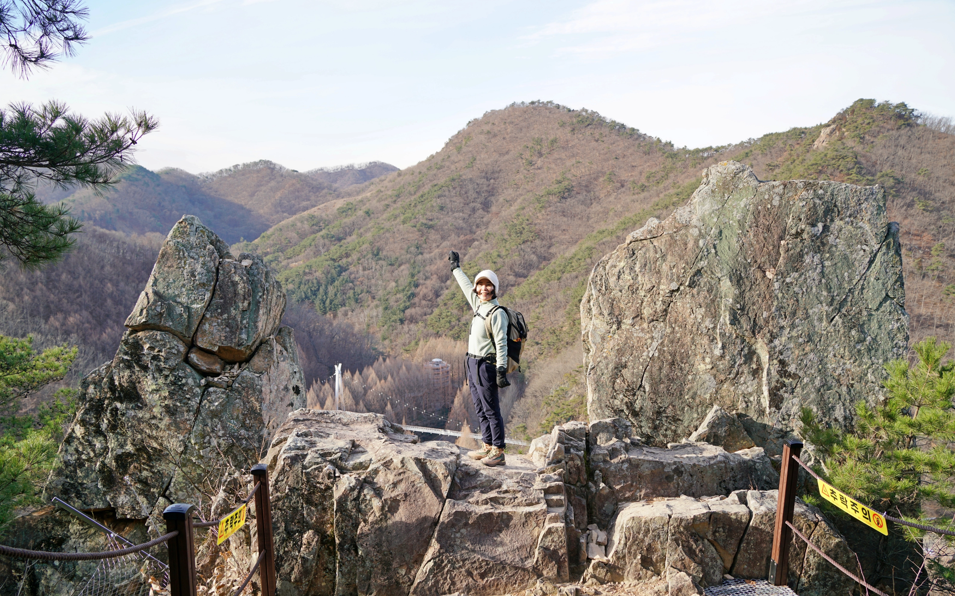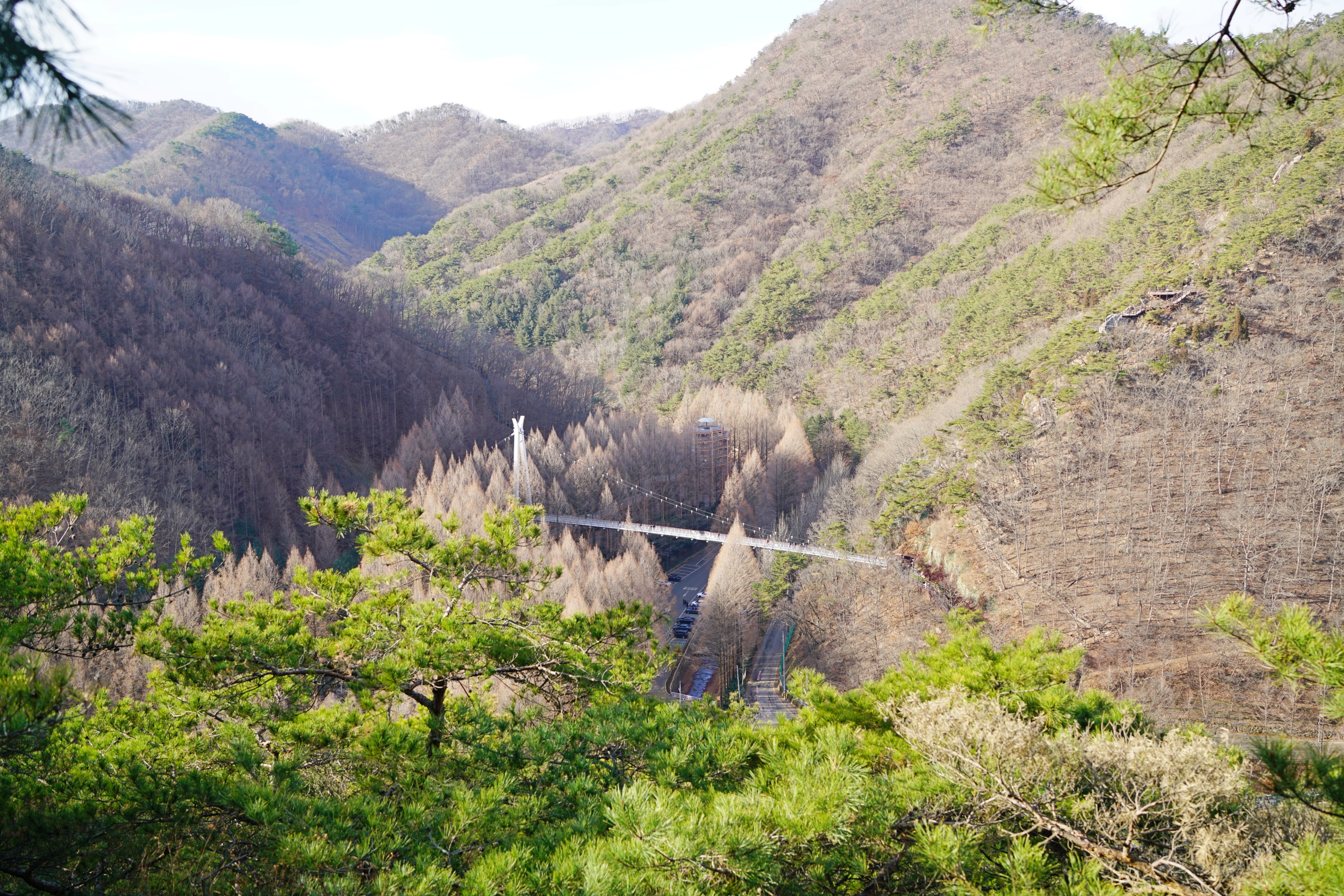 장태산 정상의 형제바위 위에 있는 전망대에서는