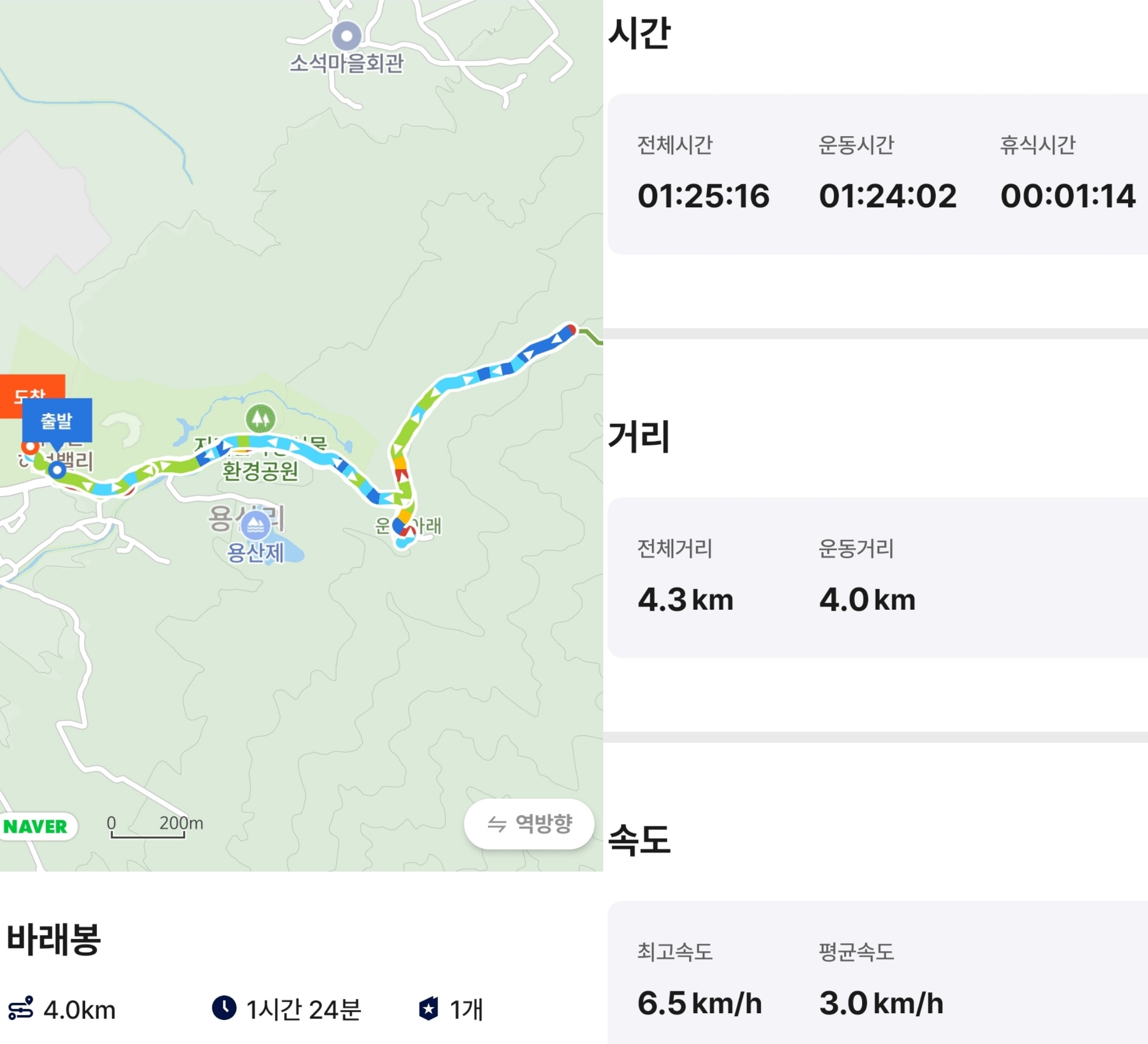4. 산행시간 : 1시간 25분(휴식시간 1분 포함)