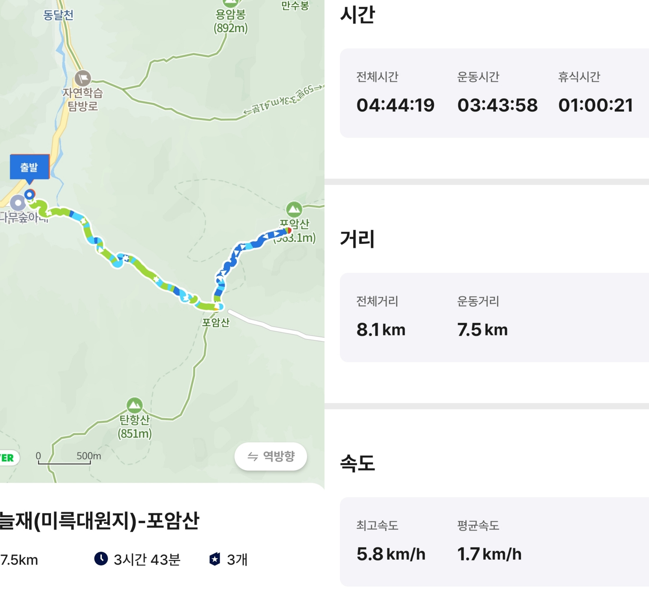 오늘은 포암산만 찜하고 되돌아 하산했드래요