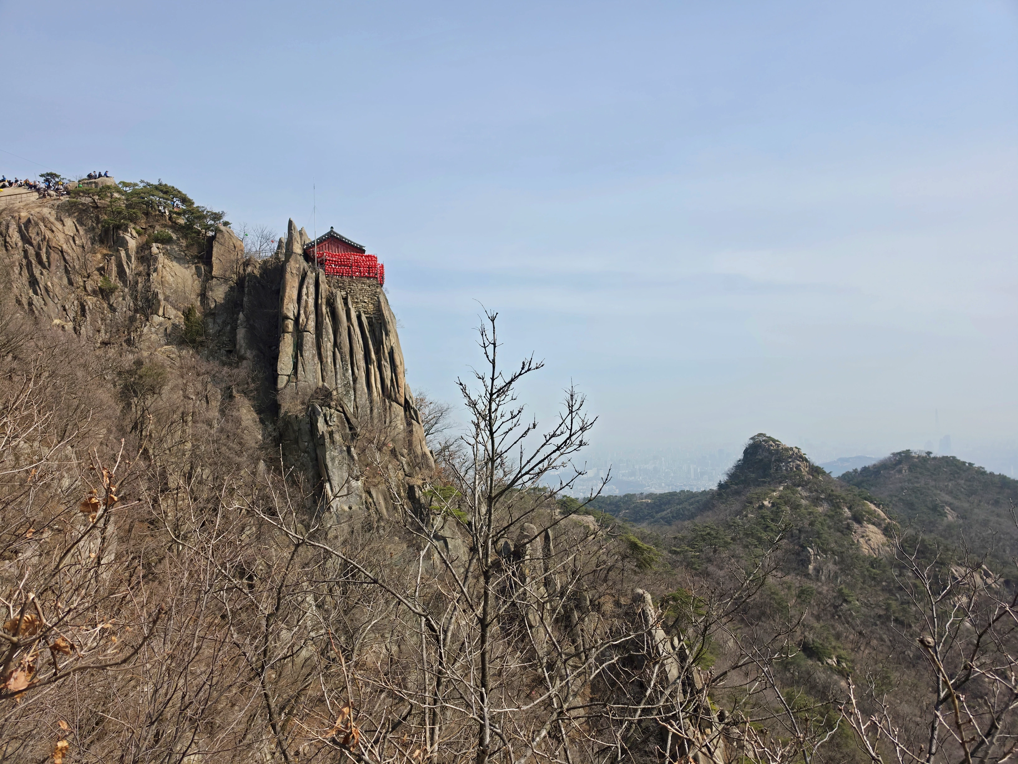 오른쪽이 연주암의 유명한 기도터인 연주대 응진전이다