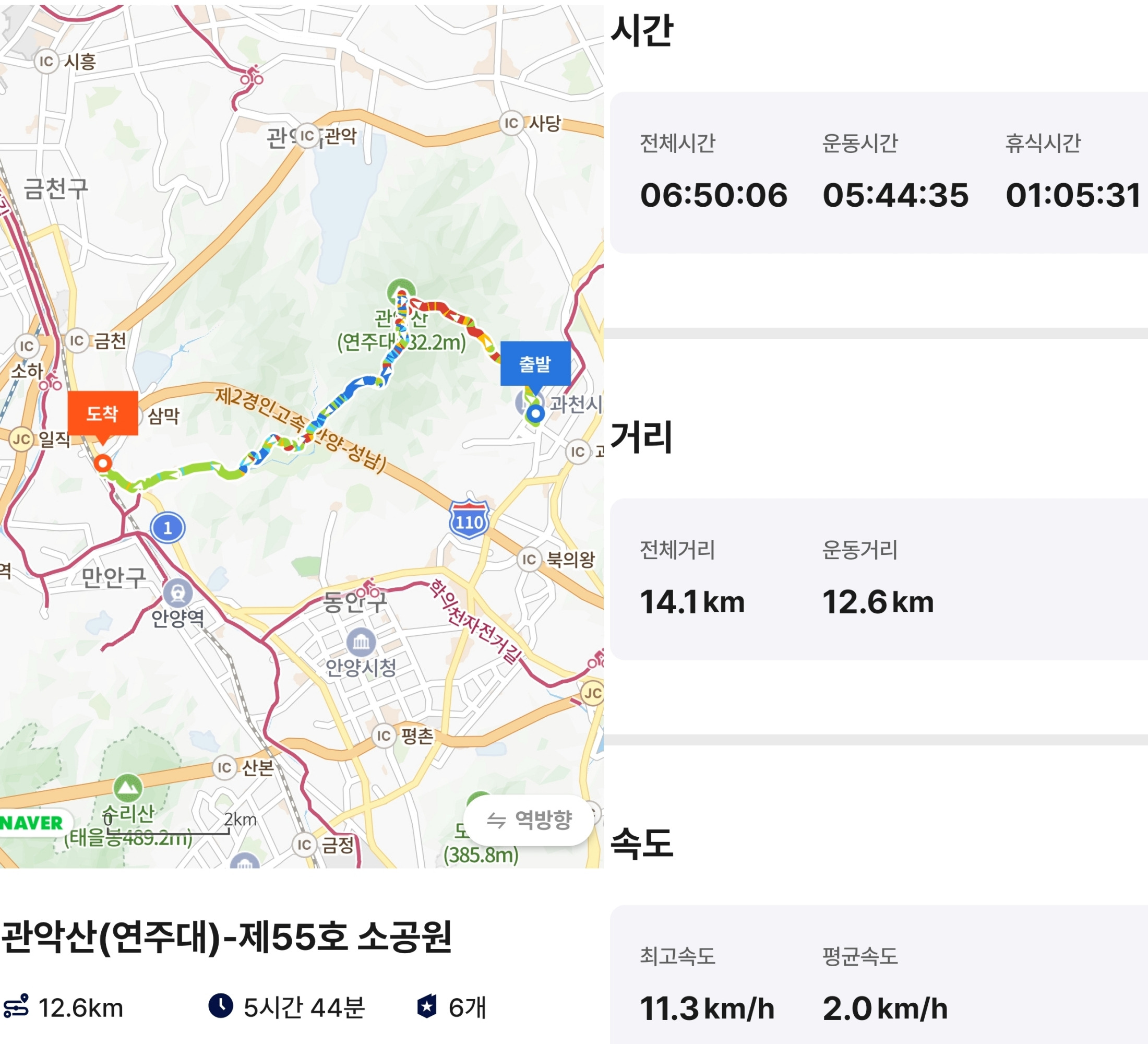 4. 산행시간 : 6시간 50분(휴식시간 1시간 5분 포함)