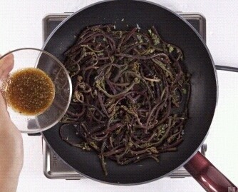 4. 냄비를 데워서 참기름을 두르고 고사리