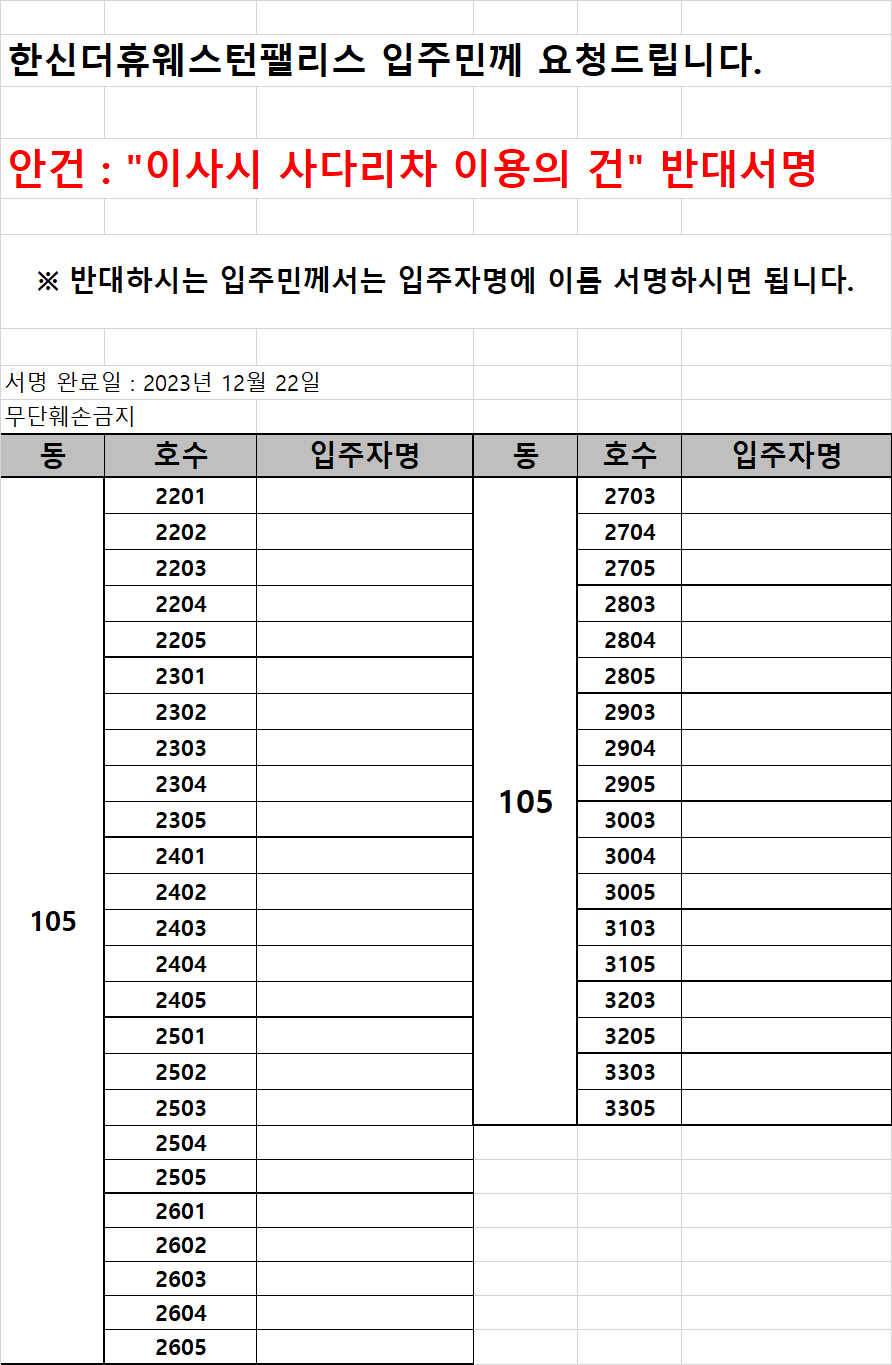 입대위 회장님께서 동/호수/실명을 노출하여 정정당당히 게시하라는 의견도 반영하였습니다.