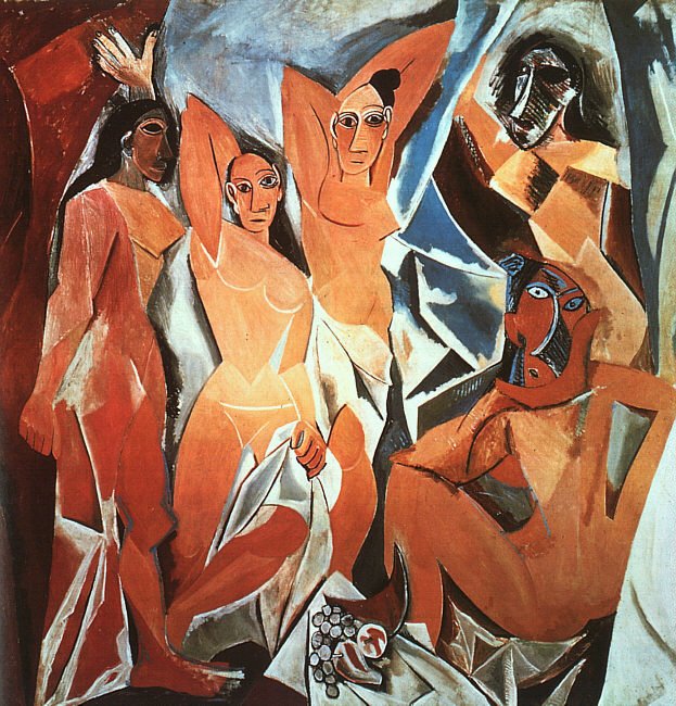 피카소는 점차 회화 데생뿐만 아니라 조각 판화에서도 명성이 나기 시작했고 그 당시 인상주의나 사실주의에 염증을 내고 있었던 사람들에게 원시적 생명의 충만함을 표현하려는 미술로 새 돌출구를 찾고 있었다. 그러던 중 어느 날 25세의 패기만만한 피카소는 인류사 박물관에서 흑인 미술만이 가지고 있는 독특한 생명력에 매료된다. 그들의 역동성, 대지적 순결성, 춤이나 탈이나 조각 속의 원시적이고 원색적이고 직선적 표현 기법에 깊은 감명을 받는다. 조각가 헨리 무어도 "아프리카 미술의 공통적인 특징은 강력한 생명력이다. 아프리카 미술에 있어서는 강력한 신앙과 희망과 공포의 표현을 엿볼 수 있다." 라고 말한 바 있지만 피카소는 아예 이것을 그의 그림의 시발점으로 삼았던 것이다. 죽음을 너머 거대한 생명으로 향해 달려가는 듯한 아프리카의 춤, 노래, 미술, 조각들이 화가에게 주는 힘과 원천적 에너지는 무궁무진한 것이었다.