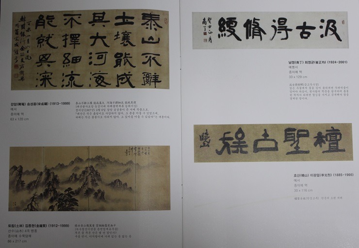 ∙전시품 : 서예 4점(강암 송성용 등), 동양화 4점(토림 김종현 등), 서양화 2점(천칠봉 등),