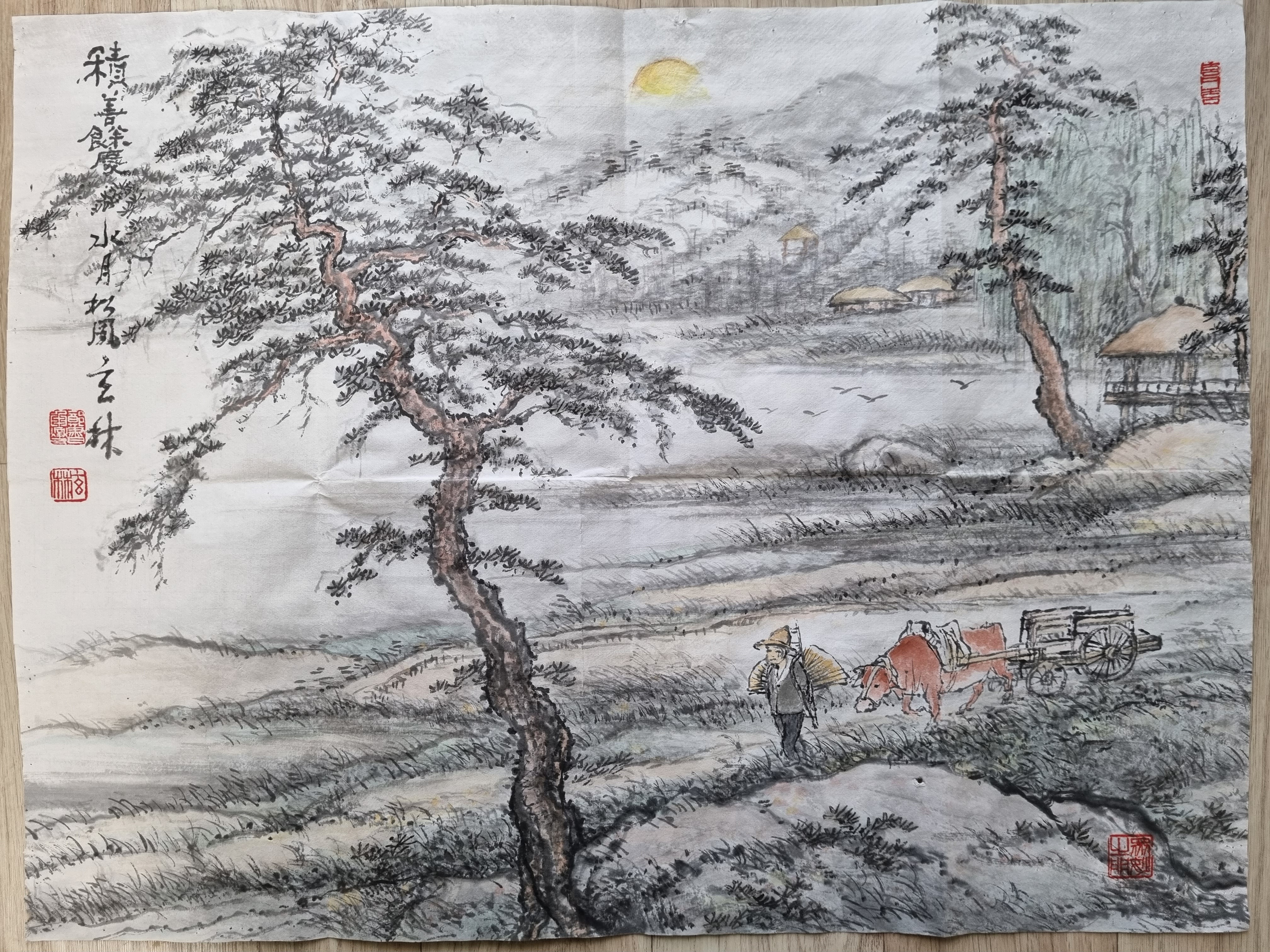 첫번째 는 은근히 매력있는 작품이라 전시회에 출품할만한 작품이고 두번째 큰작품은 작품은 좋은데 글씨가 나무 많아 서운하고 세 번째 작품은 그런대로 괜찮고 네번째는 오래전 작품인데 대중성이 없는게 서운하고 다섯번째도 그런대로 좋고 마지막 작품은 요즈음 작품인데 너무 많이 그리는 경향이 있단다.그런대로 괜찮은 작품들인것 같으니 신세진 사람들에게 선사해도 괜찮겠다.