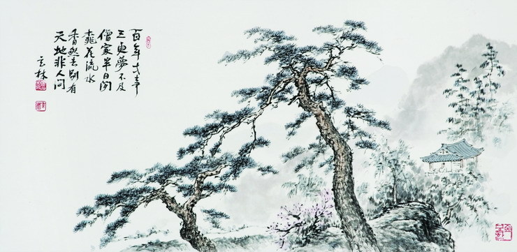고사관폭도(高士觀瀑圖) 春景 50호 변형 (최근작 2008 / 작가 소장)