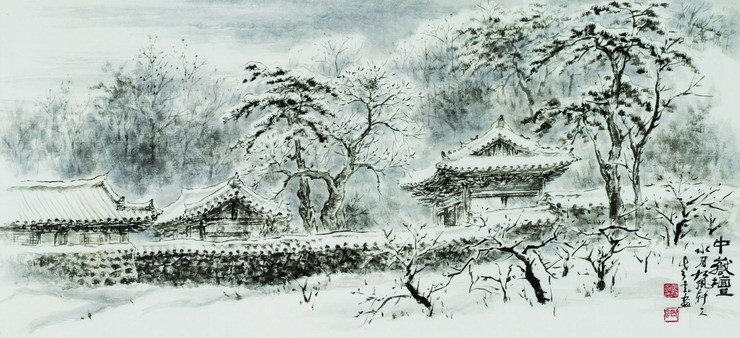 묵현처 세심정(默玄處 洗心亭)雪景 50호 변형 (최근작 2008 / 작가 소장)