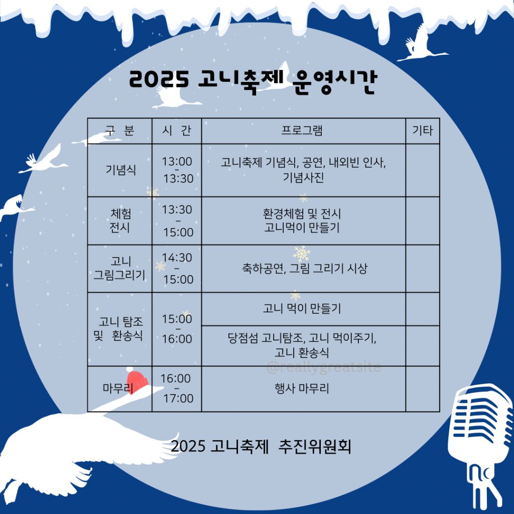 12회 고니 축제 안내 작성자miru|작성시간25.02.15|조회수48 목록 댓글 0 글자크기 작게가 글자크기 크게가 다음검색 현재 게시글 추가 기능 열기 북마크 공유하기 신고 센터로 신고 댓글 댓글 0 댓글쓰기 답글쓰기 댓글 리스트