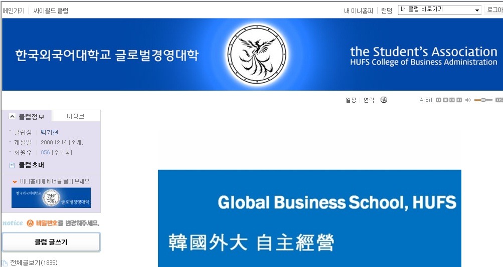 그림을 누르면 한국외대 글로벌경영대학 재학생 싸이월드 클럽으로 이동합니다:)