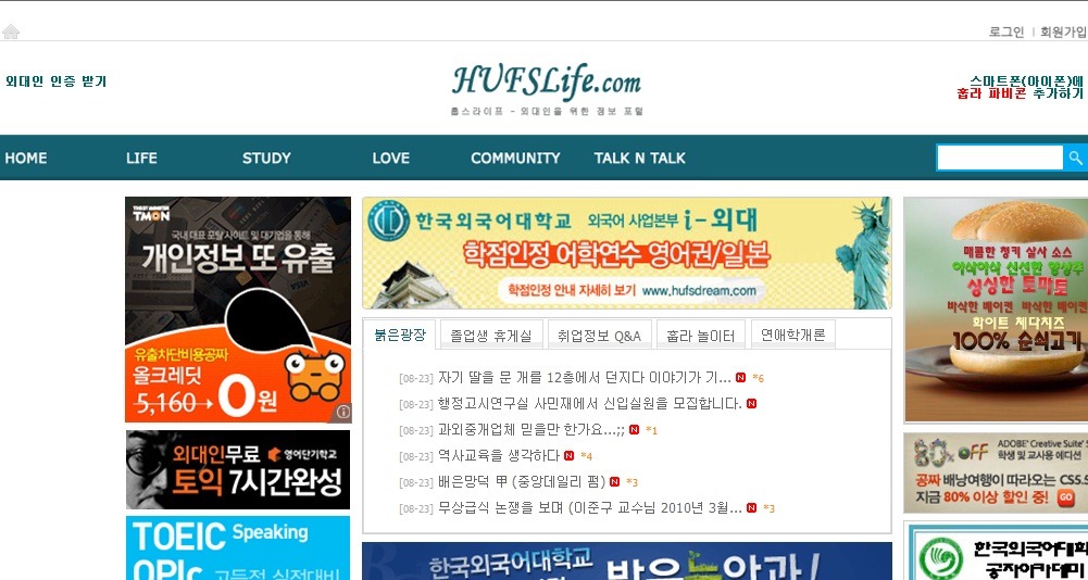 cf) 가입은 모두가 가능하나 모든 게시판을 보려면 외대인 인증이 필요합니다.