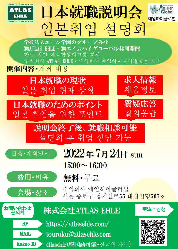 이번 개최는 학교법인 에일학원의 그룹회사 「주식회사 ATLAS EHLE」과 「주식회사 에임하이글로벌」의 공동 개최입니다.