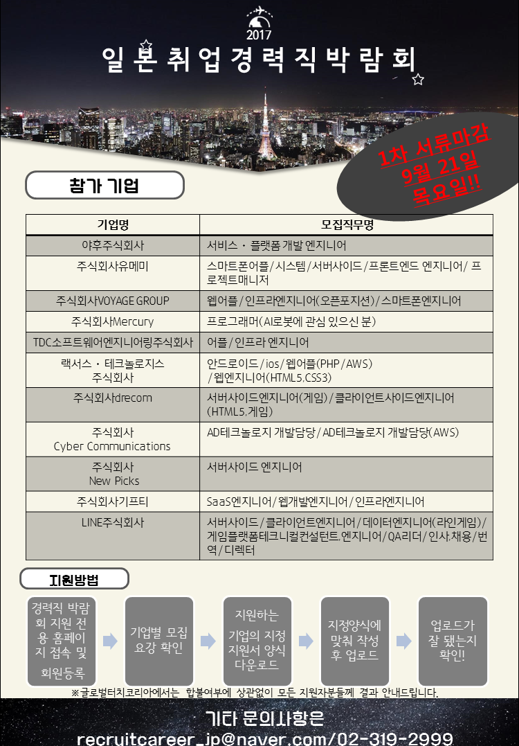 2017일본취업경력직박람회 지원홈페이지 방문부탁드립니다!!