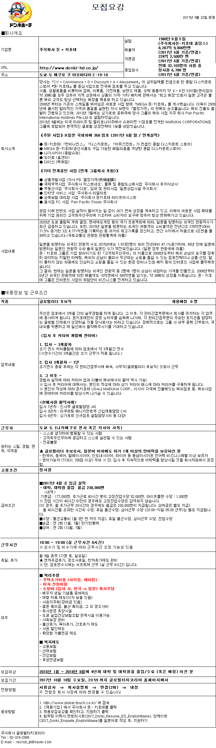 2017 하반기 주식회사 돈 · 키호테 한국인재채용