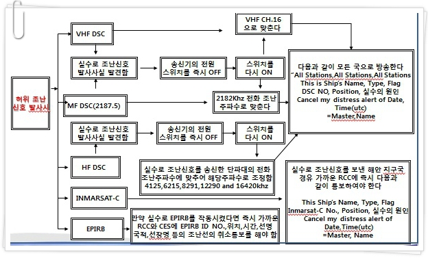 1. VHF, MF/HF 오발사시 상기와 같이 조치를 하고 가장 가까운 RCC에 FAX로 상기 메시지를 정리하여 전송 후