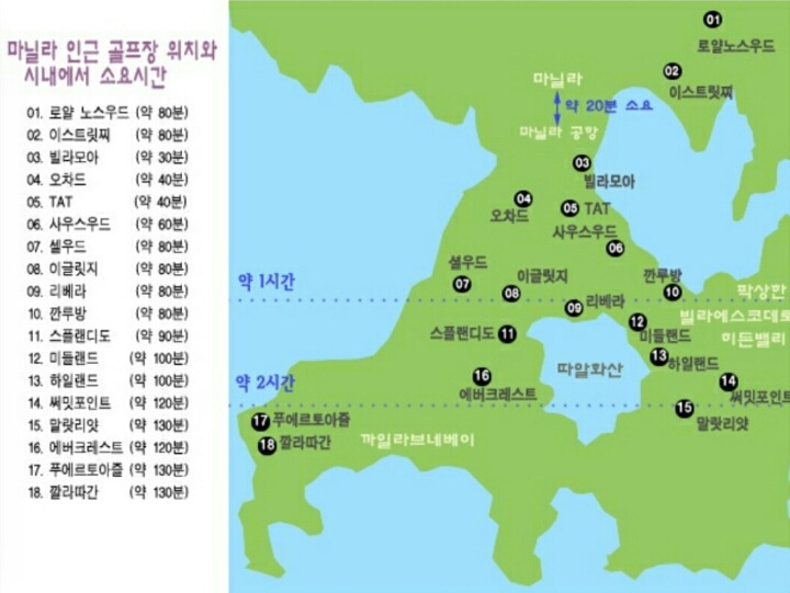 2) 마닐라에서 이동거리 1시간 30분 2시간 거리의 골프장들