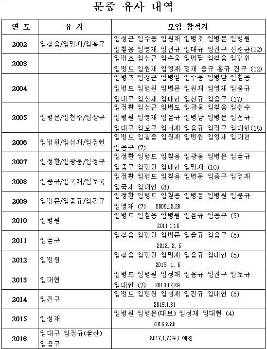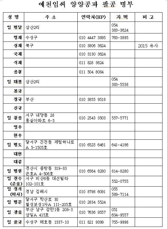 예천임씨 공통작명에 쓰는 항렬자