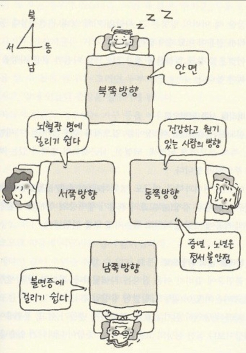 북쪽으로 머리방향을 두고 자게 되면 깊은잠을 이루지 못하고